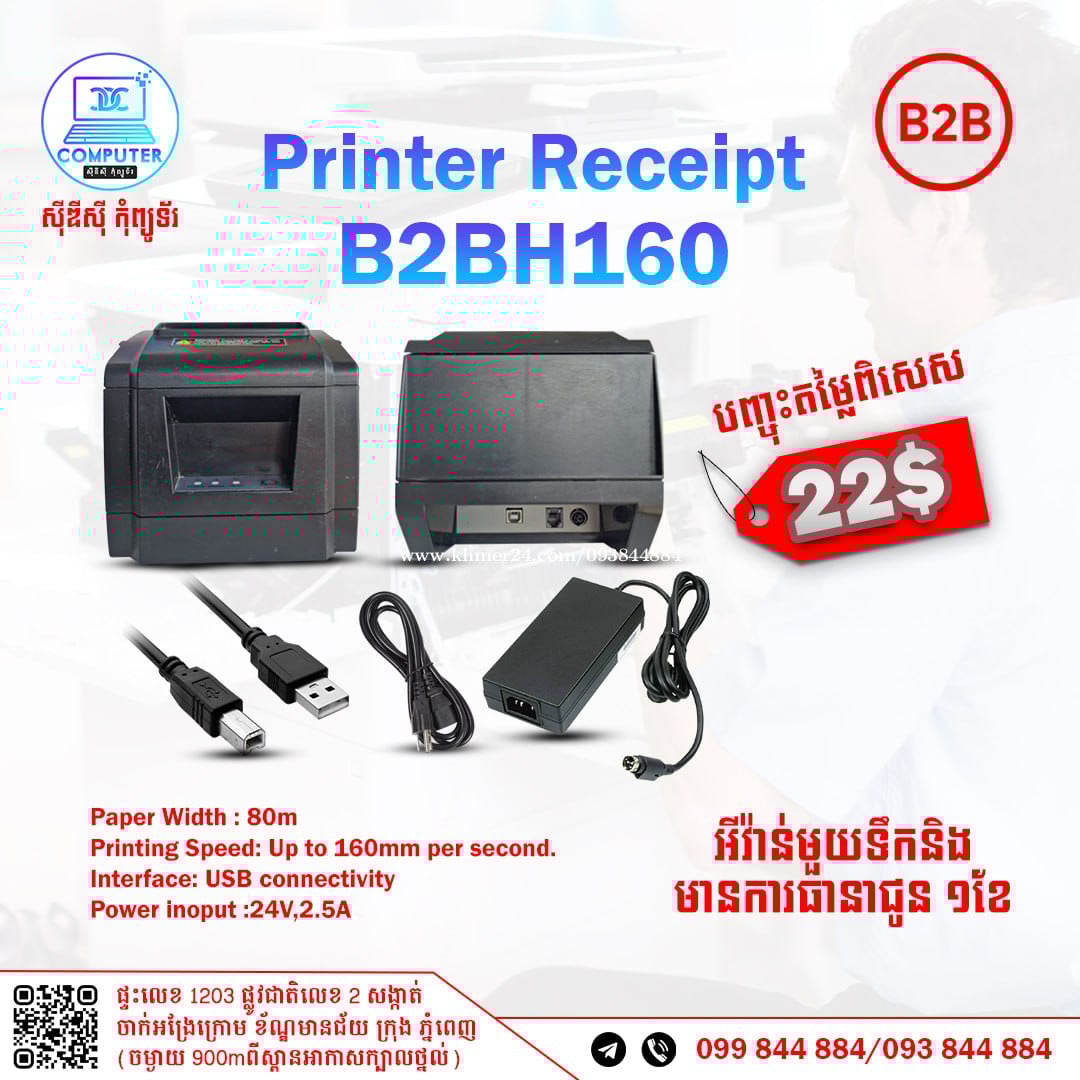 🏢តំលៃកាន់តែពិសេសជាមួយនឹង Printer Receipt ! 1ទឹក តំលៃ 22$ ធានា១ខែ CDC COMPUTER 🖥 ☎️ ទូរស័ព្ទលេខ : 093844xxxClick To Call / 099844xxxClick To Call Telegram : t.me/CDCCOMPUTER093 🏠 ទីតាំងហាង : ផ្ទះលេខ 1203 ផ្លូវជាតិលេខ2 ចាក់អង្រែលើ ខ័ណ្ឌមានជ័យ ភ្នំពេញ (ចំងាយពីស្ពានអាកាសក្បាលថ្នល់ 900ម៉ែត្រ) 📍 Google map : https://maps.app.goo.gl/R3W9thPP5omgsMaZA