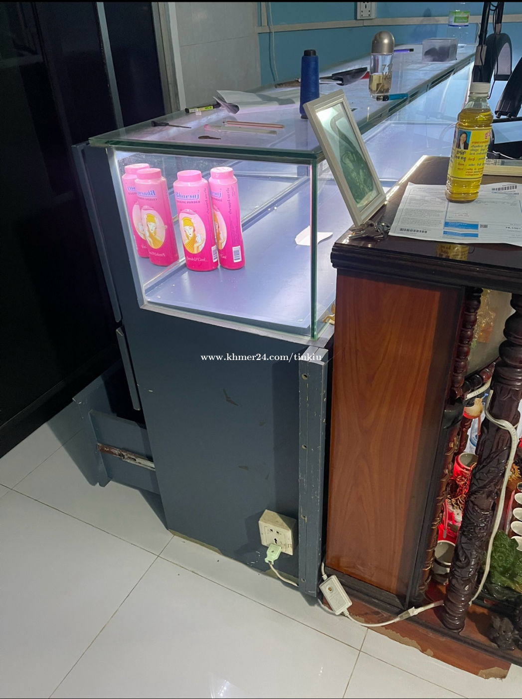 ត្រូវការលក់ទូដាក់តាំងមាសប្រភេទឈើល្អក្រាំងកញ្ចក់ក្រាស់មិនខ្លាចបែក