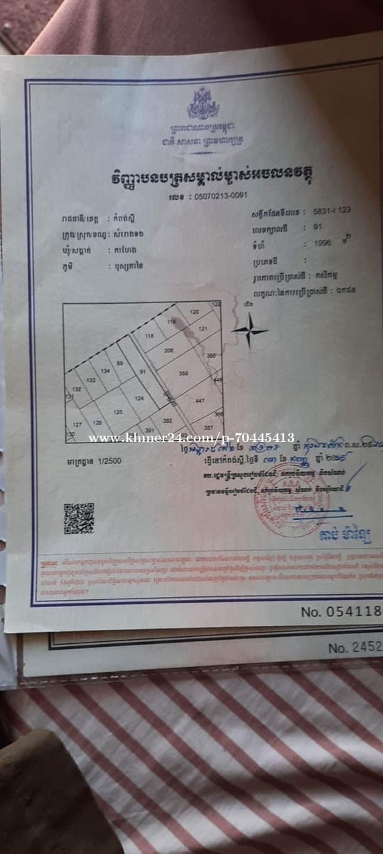 ត្រូវការលក់បន្ទាន់ដីមួយកន្លែង ស្ថិតនៅភូមិ គោកមានជ័យ ឃុំ ព្នាយ ស្រុកសំរោងទង ខេត្ត កំពង់ស្ពឺ។ ចុះពីផ្លូវក្រវ៉ាត់ខេត្ត30ម៉ែត្រ ចម្ងាយ 60ម៉ែត្រដល់ទីតាំងដី។ $9.50/1m 👉ចចារបានទៀត👈 តេឡេក្រាមម្ចាស់ផ្ទាល់ 093839xxxClick To Call (telegram)/ 077868xxxClick To Call (Samrach)