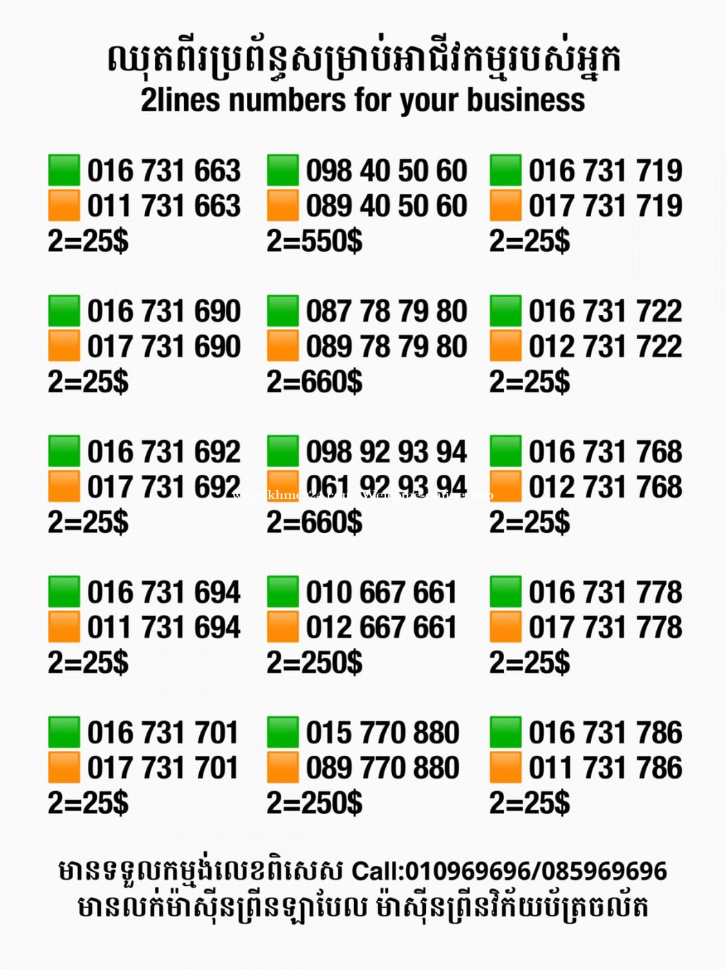 មានលក់លេខពិសេស មានទទួលកម្មង់លេខពិសេស មានលក់ម៉ាស៊ីនព្រីនឡាបែលចល័ត មានលក់ម៉ាស៊ីនព្រីនវិក័យប័ត្រចល័ត មានលក់សម្ភារៈប្រើប្រាស់ក្នុងគ្រួសារ Smart Prime II 1=30$ Smart hero 1=40$ ទូរសព្ទថ្មីក្នុងប្រអប់ លក់ធូរៗរហូតអស់ពីស្តុក អាចប្រើជាឧបករណ៍សម្រាប់ស៊ែរ wifi បាន ទំនាក់ទំនង(ខ្មែរ | English | 中文):010969696 | 085969696 Telegram: https://t.me/W9696 Telegram group: https://t.me/konkonnada អាសយដ្ឋាន:ផ្ទះលេខ២៣ ផ្លូវបេតុងលេខ១ ភូមិទួលពង្រ សង្កាត់ចោមចៅ ខណ្ឌពោធិ៍សែនជ័យ រាជធានីភ្នំពេញ ទីតាំង https://goo.gl/maps/8moqW4iTHUfJEvWQ9 ដើម្បីស្វែងរកលេខអាជីវកម្មដែលលោកអ្នកពេញចិត្ត សូមចូលទៅកាន់:https://www.khmer24.com/Welcome-onlineshop