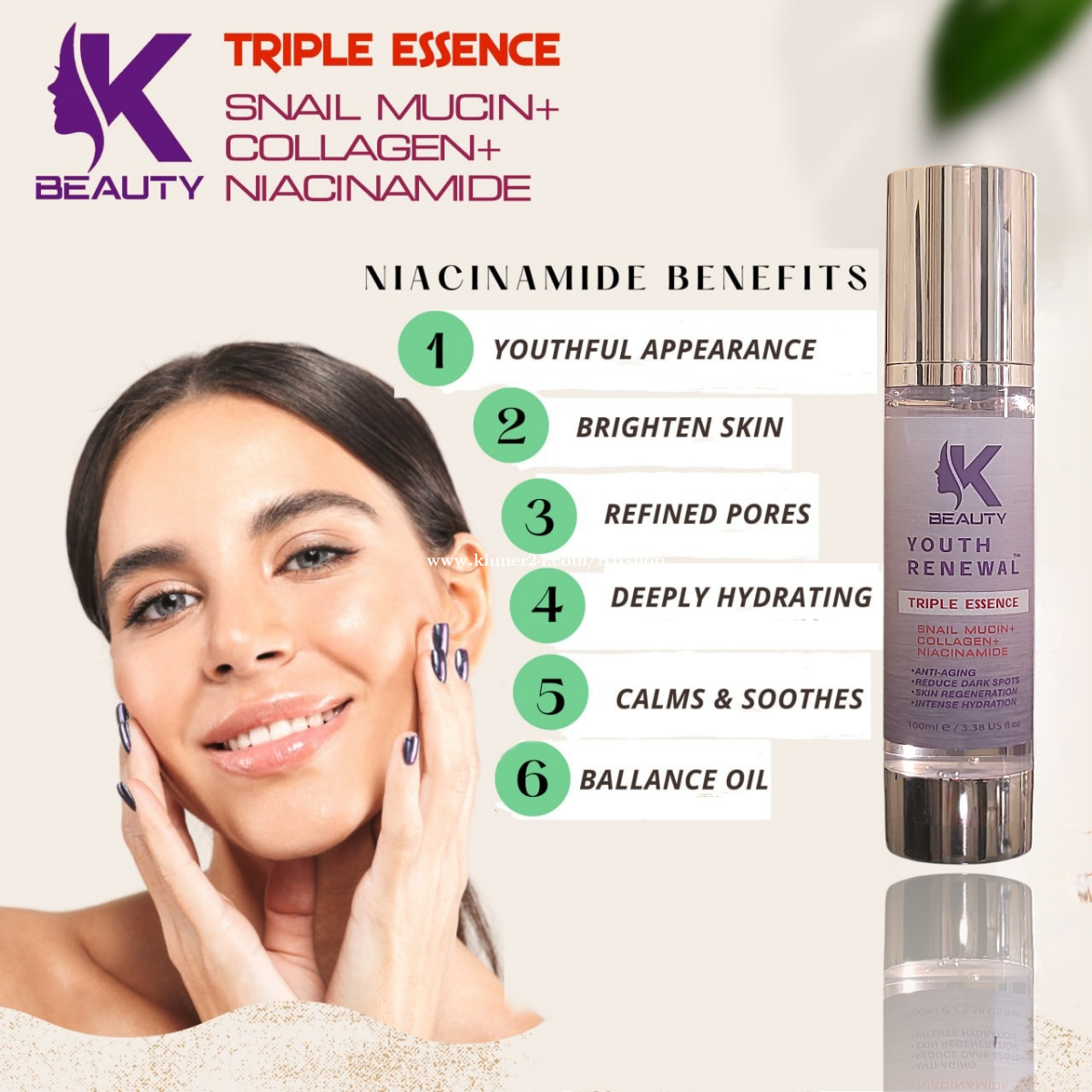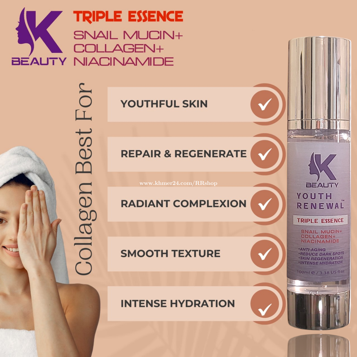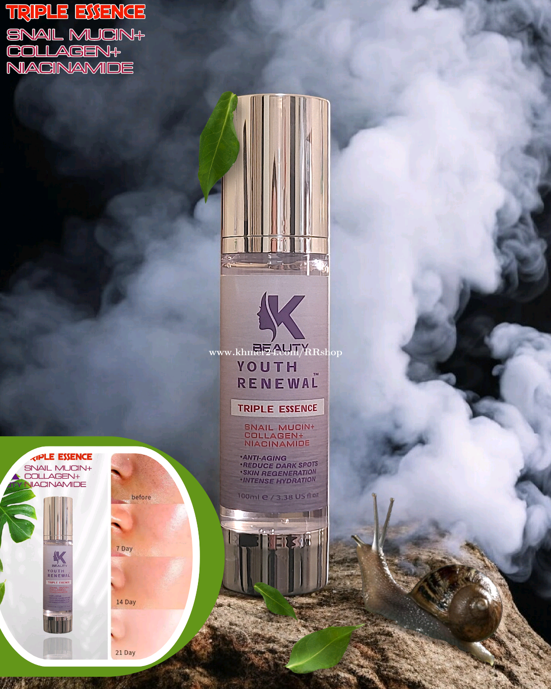 អត្ថប្រយោជន៍ 3 in 1 ដែលមានសារធាតុផ្សំ (ទឹកមាត់ខ្យង+កូឡាជែន+នីអាស៊ីណាមីត) ល្អបំផុតសម្រាប់ស្បែកមុខជាំ, អុជខ្មៅ, រោលក្រហម, ស្នាមបណ្តាលមកពីមុនធំៗ រឺ ងាយប្រតិកម្ម ពិសេសជាងនេះទៀតជួយ ▪︎បង្រួមរន្ធញើស និងកាត់បន្ថយខ្លាញ់លើស្បែកមុខ ▪︎ជួយបង្កើនការផលិតសេរ៉ាមីត (Ceramides) ដែលជួយឱ្យស្បែករក្សាសំណើមបានល្អ និងការពារពីការរលាក។ ▪︎ជួយជំរុញការផលិតកូឡាជែន ធ្វើឱ្យស្បែកតឹងណែន និងកាត់បន្ថយស្នាមជ្រួញតូចៗ 📍របៀបប្រើប្រាស់: លាបព្រឹក និង មុនពេលចូលគេង រឺលាបមុនពេលប្រើប្រាស់គ្រឿងសម្អាងក៏បាន ✨️ឃើញលទ្ធផលបន្ទាប់ពីប្រើចាប់ពី 2-3សប្តាហ៍ឡើង ធានាថាជាប់ចិត្តបន្ទាប់ពីប្រើអស់1ដប 🛍Korea Formula Made in USA ចំណាំ: មិនមែនជាផលិតផលសម្រាប់ព្យាបាលមុនទេ