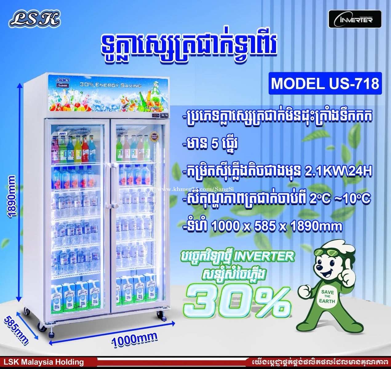 ទូក្លាស្សេត្រជាក់ LSK ម៉ូឌែល US ត្រជាក់ខ្លាំង ទាំង8ជម្រើស 8ទំហំ ជ្រើសរើសទៅតាមតម្រូវការ🤗 ❄️សីតុណ្ហភាពល្អ ក្លាស្សេ ត្រជាក់ឆាប់រហ័ស 🧊មិនដុះក្រាំងទឹកកក ⚡️សន្សំសំចៃខ្ពស់ មិនស៊ីភ្លើង 📢គុណភាពខ្ពស់ ស្តង់ដាអន្តរជាតិ គ្រប់គ្រងដោយប្រទេសម៉ាឡេស៊ី 🛒ល្អសម្រាប់អាជីវករ លក់ភេសជ្ចៈ និងក្លាស្សេរបស់ផ្សេងៗ🥳 ————————————————— ⚙️មានការធានារយៈពេល២ឆ្នាំទៅលើគ្រឿងបន្លាស់ និងសេវាកម្មរហ័សទាន់ចិត្ត 👉🏼លោកអ្នកអាចរកទិញបាននៅ ហាង លីម ងួន ដែលស្ថិតតាមបណ្តោយផ្លូវលេខ 274 ផ្ទះលេខ 436Eo ខាងត្បូងស្តាតអូឡាំពិក ហួសស្តុបអាងទឹកប្រហែល 150 ម៉ែត្រ 👉🏼Telegram Number : 0769484xxxClick To Call | 012974xxxClick To Call 👉🏼Phone Number : 015974xxxClick To Call | 0978484xxxClick To Call 👉🏼Telegram Link : https://t.me/PenghourSoeng https://t.me/LimNgounShop 👉🏼Tik Tok : https://www.tiktok.com/@limnguonelectronicshop #lskcambodia #ទូក្លាស្សេ #Fridge