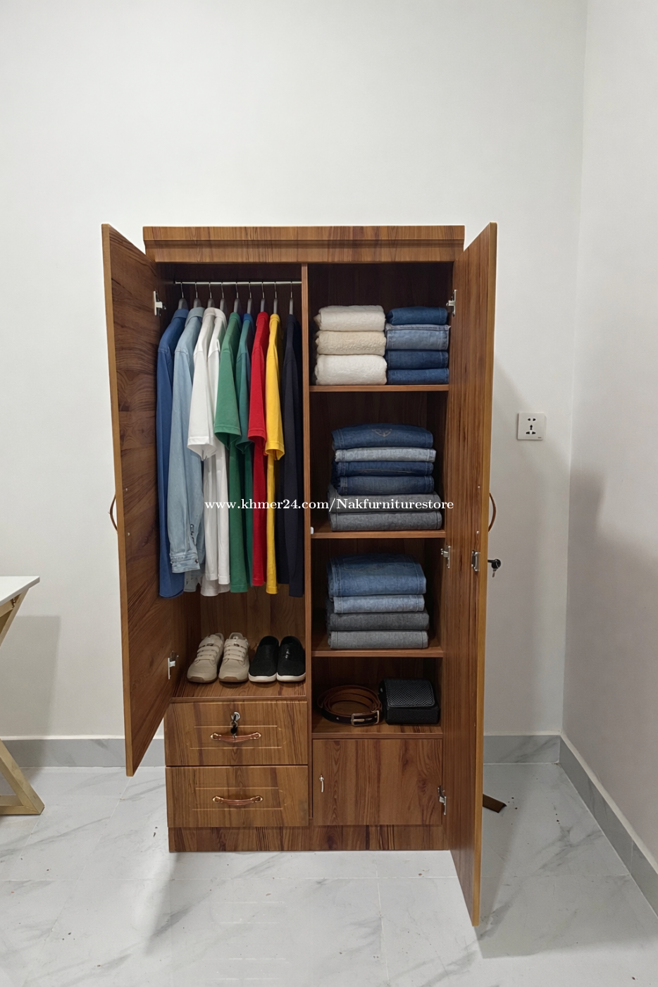 👕👖 ទូដាក់ខោអាវ រចនាស្អាត ប្រើប្រាស់បានច្រើន ✨ បែងចែកជាផ្នែកព្យួរ + ដាក់ខោអាវ 🧦 មានថត + ទុកស្បែកជើងខាងក្រោម 💰 តម្លៃត្រឹមតែ 90$ ប៉ុណ្ណោះ! 📦 មានស្តុក | 🚚 ដឹកជូនបាន 👉 Inbox Call 0966270xxxClick To Call/ 0978338xxxClick To Call/ 012581xxxClick To Call Telegram https://t.me/NAKFurnitureStore168 𝐂𝐡𝐚𝐧𝐧𝐞𝐥 តម្លៃអីវ៉ាន់ដែលមានក្នុងហាង https://t.me/NAKFURNITURESTORE —————————————————— 🚚📦មានសេវ៉ាដឹកជញ្ជូន គ្រប់២៥ ខេត្ត ក្រុង និង រាជធានី 𝐅𝐫𝐞𝐞 𝐝𝐞𝐥𝐢𝐯𝐞𝐫𝐲 in Phnom Penh 🚚 金边免费送货🚚 📍អាស័យដ្ឋាន 𝐚𝐝𝐝𝐫𝐞𝐬𝐬: បុរីML, សង្កាត់ កំបូល, ខណ្ឌ កំបូល, រាជធានីភ្នំពេញ