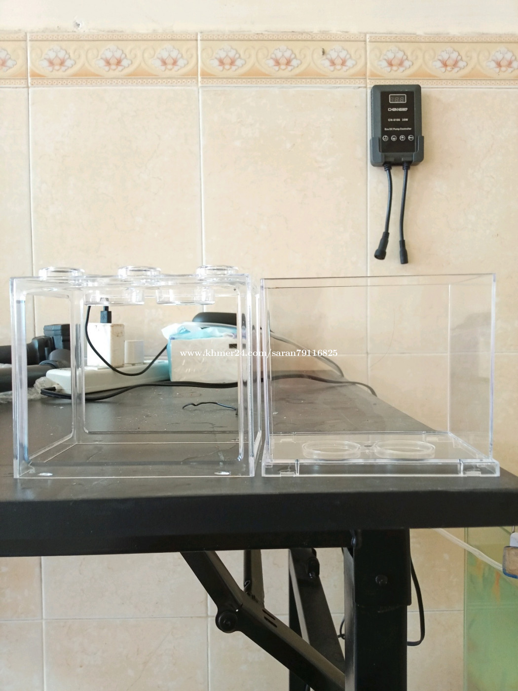 ទូត្រីសម្រាប់ដាក់ត្រី Betta ថ្លាស្អាត 1set 2.5$មានគម្រប់