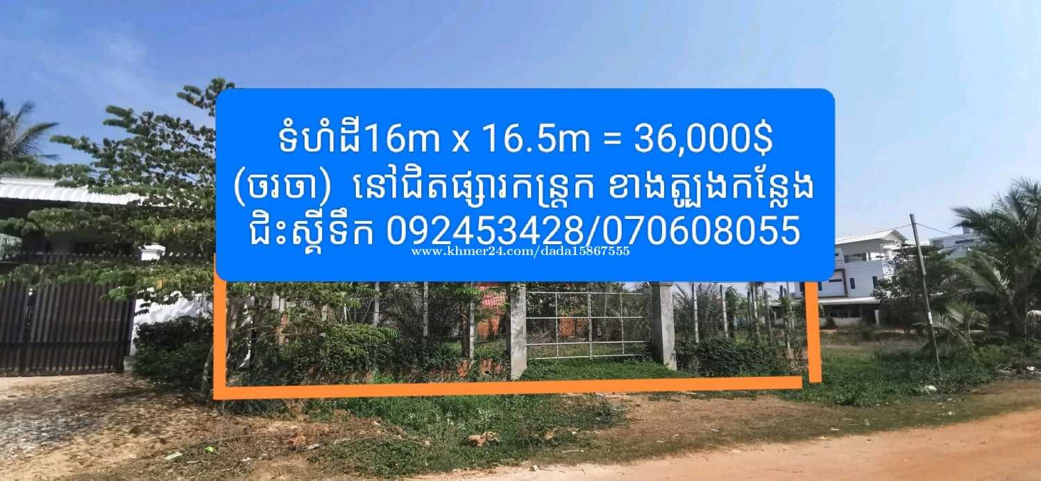 ទីតាំងល្អនៅជិតផ្សារកន្ត្រក ខាងត្បូងកន្លែងជិះស្គីទឹក និងសណ្ឋាគារភូមិបៃតង ដីមានទំហំ16m x 16.5m = 36,000$ (ចរចា) មានរបងស្រាប់ ប្លង់រឹង ផ្លូវ15m ទីតាំងភូមិកន្ត្រក សង្កាត់ស្វាយដង្គំ ក្រុងសៀមរាប 📱Telegram 092453xxxClick To Call/070608xxxClick To Call
