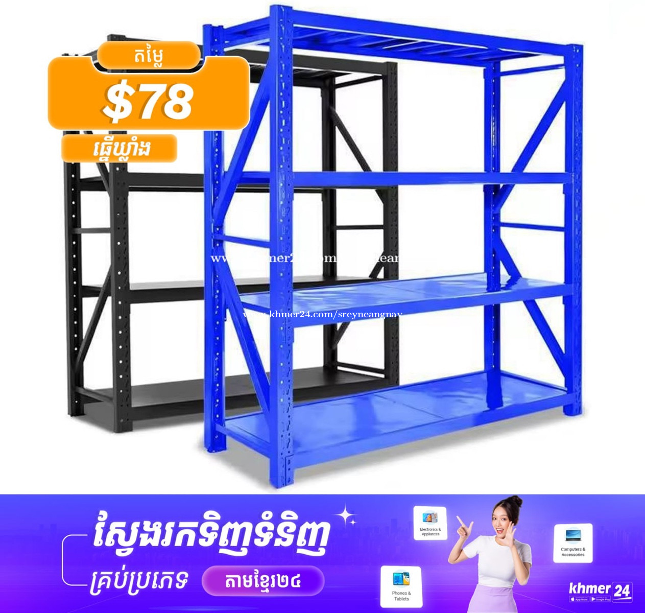 ធ្នើឃ្លាំងសញ្ញាក្បាលនាគ🐉 ខ្នាត 200*60*200cm 👉ទំងន់ដែក 41kg ទ្រទំងន់បាន 250kg/ជាន់ : តម្លៃ 78$ 👉ទំងន់ដែក 45Kg ទ្រទំងន់បាន 300Kg/ជាន់ : តម្លៃ 90$ 👉ទំងន់ដែក 64Kg ទ្រទំងន់បាន 450Kg/ជាន់ : តម្លៃ 120$ មាន4ពណ៌ ខ្មៅ ស ខៀវ នឹងពណ៌ទឹកក្រូច សាច់ដែកមាំ ហាប់ មិនច្រេះ មិនហើយពណ៌ 📲 081589xxxClick To Call https://t.me/NeangNSN