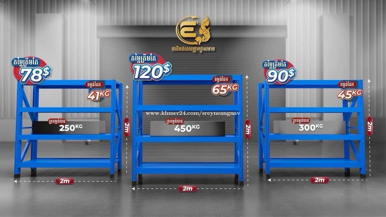 ធ្នើឃ្លាំងសញ្ញាក្បាលនាគ🐉 ខ្នាត 200*60*200cm 👉ទំងន់ដែក 41kg ទ្រទំងន់បាន 250kg/ជាន់ : តម្លៃ 78$ 👉ទំងន់ដែក 45Kg ទ្រទំងន់បាន 300Kg/ជាន់ : តម្លៃ 90$ 👉ទំងន់ដែក 64Kg ទ្រទំងន់បាន 450Kg/ជាន់ : តម្លៃ 120$ មាន4ពណ៌ ខ្មៅ ស ខៀវ នឹងពណ៌ទឹកក្រូច សាច់ដែកមាំ ហាប់ មិនច្រេះ មិនហើយពណ៌ 📲 081589xxxClick To Call https://t.me/NeangNSN