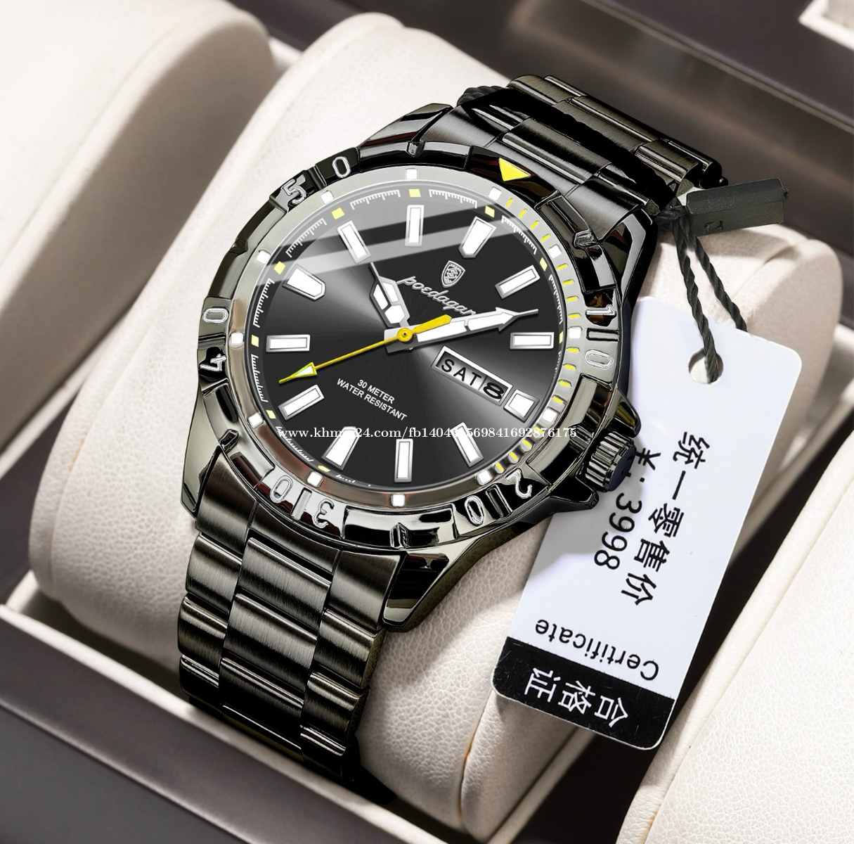 #នាឡិកា Model: Poedegar-959 តម្លៃពិសេសបញ្ចុះតម្លៃ 50%ហ្រ្វីសេវាដឹក✅សម្រាប់ 10 នាក់ដំបូងប៉ុណ្ណោះ ✅នាឡិកា ដៃ ប្រណិត សម្រាប់ បុរស 👉ខ្សែ តាន់ ធន់ រឹងមាំ💪 👉តួនាឡិកាជាប្រភេទដែកអ៊ីណុកមិនជ្រះមិនហៅពណ៌ 👉មិន ចូល ទឹក អាច ពាក់ ងូតទឹក បាន ធម្មតា🚿🛁 👉មុខនាឡិកា និងកញ្ចក់នាឡិកាធុនមិនងាយឆ្កូត💎 👉រង សម្ពាធ ទឹក 30ម៉ែត្រ 💦🌊 👉មាន ផូស្វ័រភ្លឺពេលយប់ 💡 👉 មានការធានាជូនពីក្រុមហ៊ុនផ្ទាល់ ☎️ទំនាក់ទំនង ឬតេឡេក្រាម010959xxxClick To Callសូម អរគុណ 🙏❤️