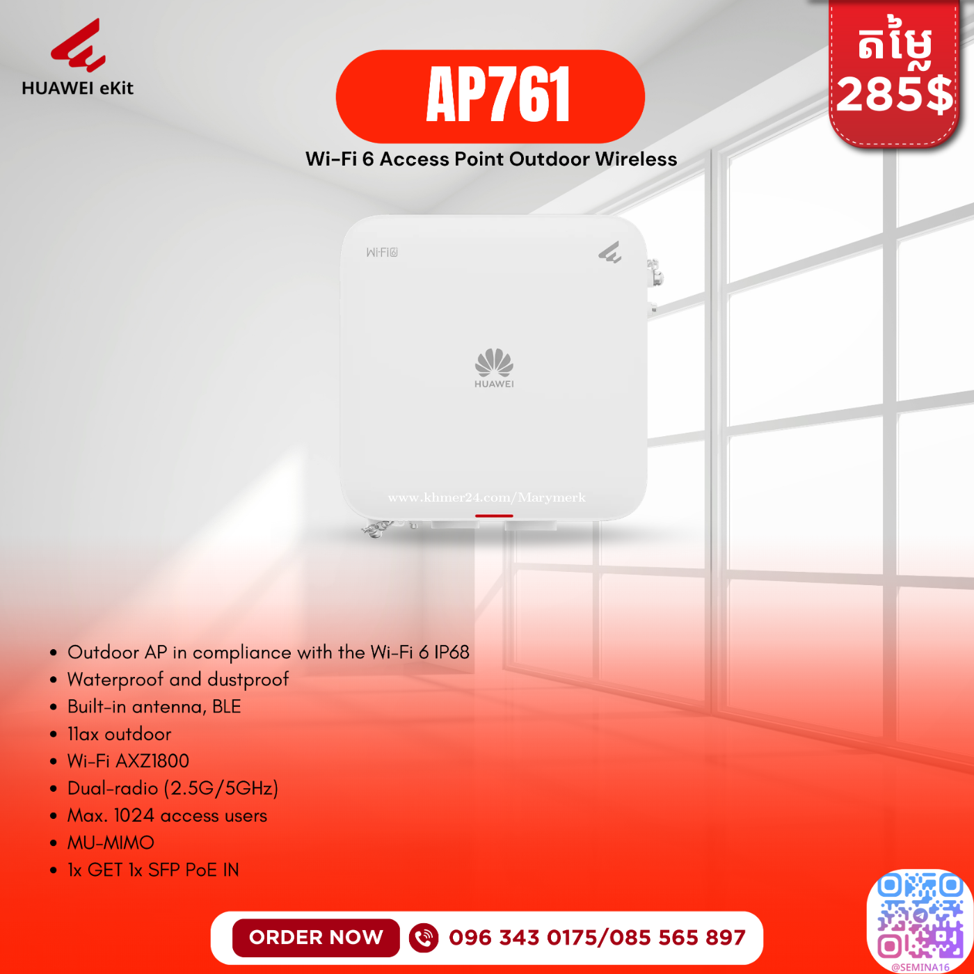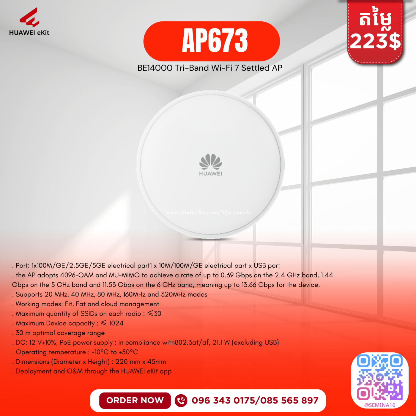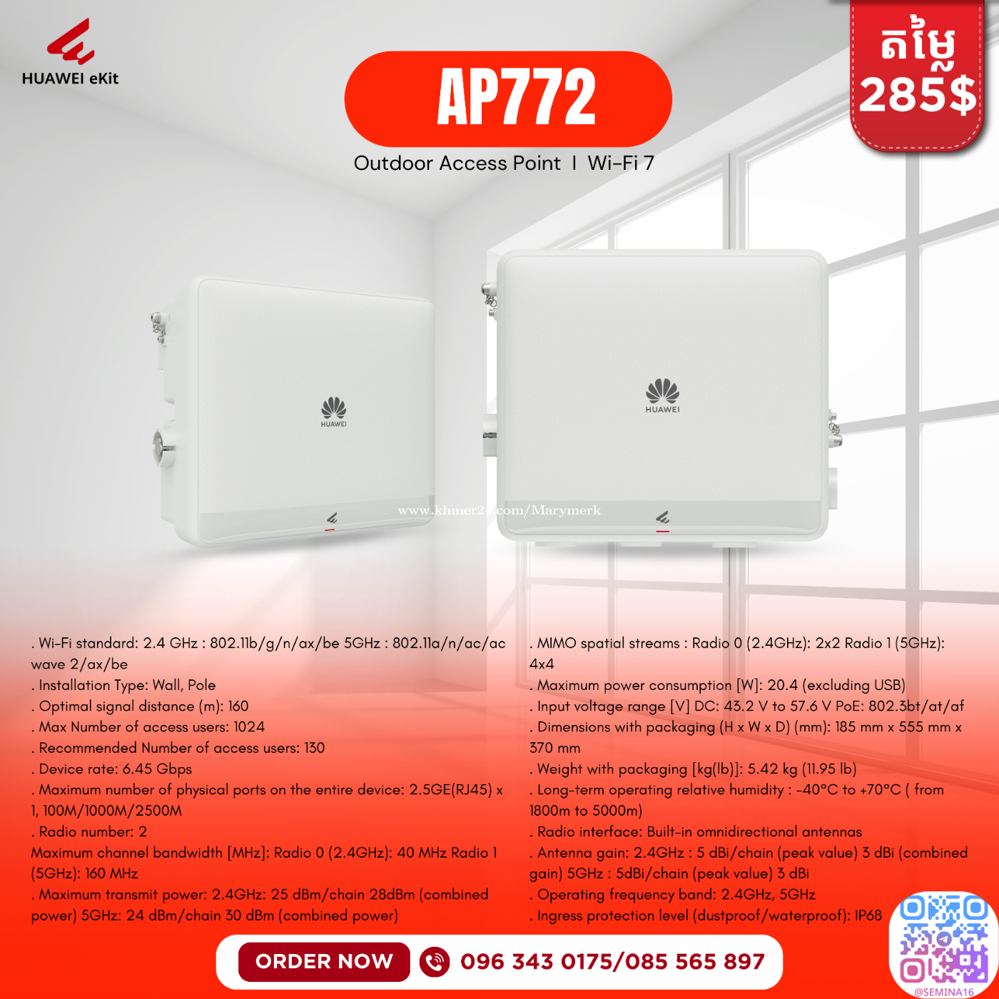 ជំរាបសួរអតិថិជនទាំងអស់គ្នា🙏 នេះជាប្រភេទ HUAWEI ROUTER Code : -AP362 -AP371 -AP661 -AP673 -AP761 -AP772 -AP160 -AP271E -AP266 👉 1year warranty .........................🍀....................... ☎️ទំនាក់ទំនងជាវផលិតផល: ☎️Smart: 0963430xxxClick To Call ☎️Cellcard: 077323xxxClick To Call/ 085565xxxClick To Call 📱ចុចចូល Telegram: https://t.me/Semina16 🏠ផ្ទះលេខ 20N ផ្លូវលេខ K4B សង្កាត់ទឹកថ្លា ខណ្ឌសែនសុខ ភ្នំពេញ. 🗺ប្រាប់ពីទីតាំង:https://maps.app.goo.gl/vyqv7wgUvdS7T3v86