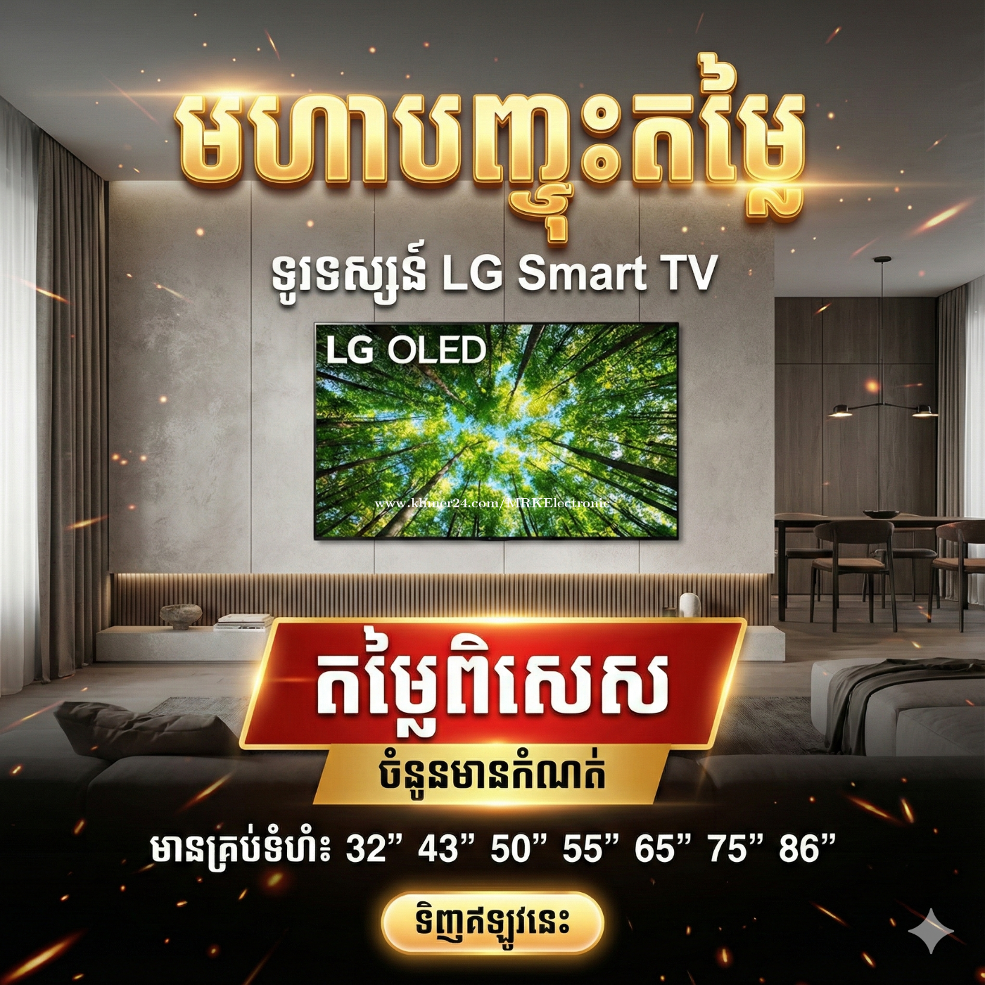 យើងខ្ញុំមានការបញ្ចុះតម្លៃយ៉ាងពិសេសទៅលើទូរទស្សន៍ LG Smart TV គ្រប់ម៉ូដែល និងគ្រប់ទំហំ។ មិនថាលោកអ្នកត្រូវការទំហំតូចសម្រាប់បន្ទប់គេង ឬទំហំធំសម្រាប់បន្ទប់ទទួលភ្ញៀវ យើងមានទាំងអស់ក្នុងតម្លៃដ៏អស្ចារ្យ! 👇 តារាងតម្លៃពិសេស (Special Price List): 👇 ✅ LG 32” តម្លៃត្រឹមតែ $199 ✅ LG 43” (2K) តម្លៃ $260 ✅ LG 43” (4K) តម្លៃ $330 ✅ LG 50” តម្លៃ $380 ✅ LG 55” តម្លៃ $420 ✅ LG 65” តម្លៃ $650 ✅ LG 75” តម្លៃ $950 ✅ LG 75” (NANO) តម្លៃ $1190 ✅ LG 85” (NANO) តម្លៃ $1700 ⚠️ ប្រញាប់ឡើង! ចំនួនមានកំណត់។ ⚠️ 👉 ចុចទីនេះដើម្បីទិញ ឬសាកសួរព័ត៌មានបន្ថែម៖ https://t.me/mrkelectronic ☎️ ទំនាក់ទំនងផ្នែកលក់: 099997xxxClick To Call | 093997xxxClick To Call