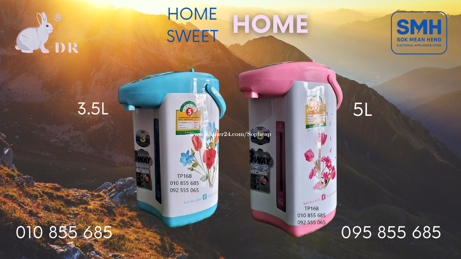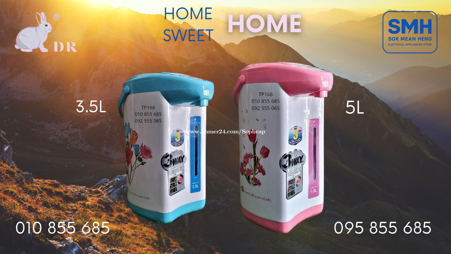 បំពង់ទឹកក្តៅអគ្គីសនី International DR Electric Air Pot _ 3.5L / 5L (New) . - ផលិតផលប្រទេសថៃ / Made in Thailand - ដាំទឹកពុះ 100% / Fully Boil Function (100% Fully Boil) - 3 Ways Dispenser: Air Pump / Electric Pump / Cup Touch - បង្វិលបាន 360° / 360° Coreless Basic . 1. បំពង់ទឹកក្តៅអគ្គីសនី Inter DR-350 Electric Air Pot _ 3.5L - Capacity: 3.5លីត្រ / 3.5Litres - Power: 730W - 220V ~ 50Hz * តំលៃ / Price: 24.9$ . 2. បំពង់ទឹកក្តៅអគ្គីសនី Inter DR-500 Electric Air Pot _ 5L - Capacity: 5លីត្រ / 5Litres - Power: 730W - 220V ~ 50Hz * តំលៃ / Price: 29.9$ . SMH / សុខ មាន ហេង / Sok Mean Heng ហាងលក់គ្រឿងប្រើប្រាស់អគ្គិសនី / Electrical Appliances Store . ✅ ហាងផ្លូវការដែលមានការទទួលស្គាល់ត្រឹមត្រូវដោយ Khmer24 / Verified Business Account by Khmer24 💯 ទទួលបានទំនុកចិត្តខ្ពស់ពីអតិថិជនជាច្រើន / Trusted by Real Customers. 📍 មានទីតាំងច្បាស់លាស់ និងពិតប្រាកដនៅភ្នំពេញ / We have a clear and real/verified location in Phnom Penh. . Phone / Telegram (សេវាកម្មរហ័ស / Fast Service): Smart: 010855xxxClick To Call / https://t.me/Annsopheap Cellcard: 095855xxxClick To Call / http://t.me/Annsopheap095 . អាស័យដ្ឋាន / Address: No. 392, MaoTseToung Blvd. (St. 245), Phnom Penh. (Near P Jolie Beauty Center) . ផែនទី / Maps: https://www.google.com/maps?q=11.55595844757693,104.90165490657091&15 . #រូបទន្សាយ #បំពង់ទឹកក្តៅ #បំពង់ទឹកក្តៅអគ្គីសនី #បំពង់ទឹកក្តៅរហ័ស #ថៃ #គ្រឿងអគ្គីសនី #គ្រឿងប្រើប្រាស់អគ្គិសនី #InternationalDR #AirPot #ElectricAirPot #JarPot #ThermoPot #WaterDispenser #DR350 #DR500 #Thailand #SMH #Appliances #ApplianceStore #HomeAppaliance #ElectricAppliances #ElectricalAppliances #Promotion #Discount #Save #Free #New
