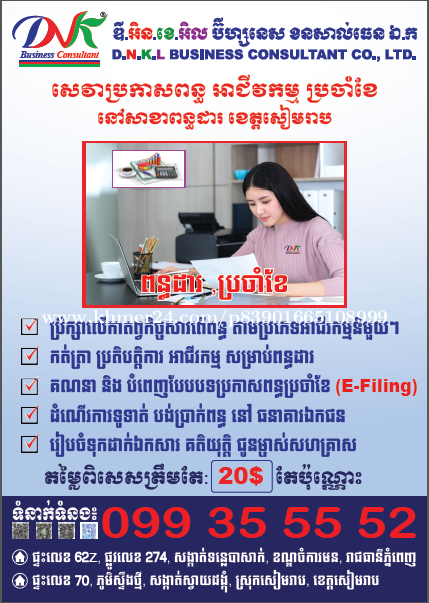 យើងខ្ញុំមានការប្រមូលសិនបញ្ចុះតម្លៃពិសេសទៅលើការប្រកាសពន្ធប្រចាំខែនិងប្រចាំឆ្នាំ នៅក្នុងខេត្តសៀមរាប ដែរមិនធ្លាប់មានពីមុនមក