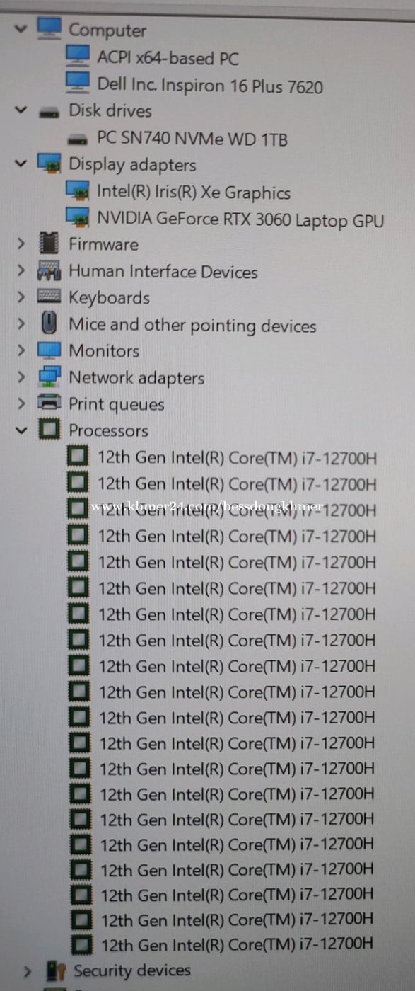 លេងហ្គេម កាត់តវីដេអូ សរសេរកូដ ម៉ាស៊ីនខ្លាំងប្រើការអីក៍បានFor gaming and design គ្រឿងធំ Dell Inspiron 16 Plus 7620 99% - Core i7-12700H 2.3GHz (20CPUs) cache 24M up to 4.7GHz - 16″ IPS WVA 3K(3072×1920) screenអេក្រង់ច្បាស់ខ្លាំង - Ram 32GB DDR5 4800 Max 40G - NVMe M.2 PCIe 4.0 1TB ល្បឿនលឿន - VGAដាច់RTX 3060 6GB GDDR6 Samsungឡើង22GB - 2.1MP FHD Camera (1080p) - សំលេងល្អខ្លាំងexcellent sound 4 speakers - ឃីភ្លើង - ផលិត2023 - WiFi 6E, adapter 130W support Type C charge - 86Wh battery ថ្មខ្លាំង5-8ម៉ោង - adapter original ទាក់ទងtelegram ដើម្បីតបរហ័ស: https://t.me/Kong666668 call 0763666xxxClick To Call cellcard