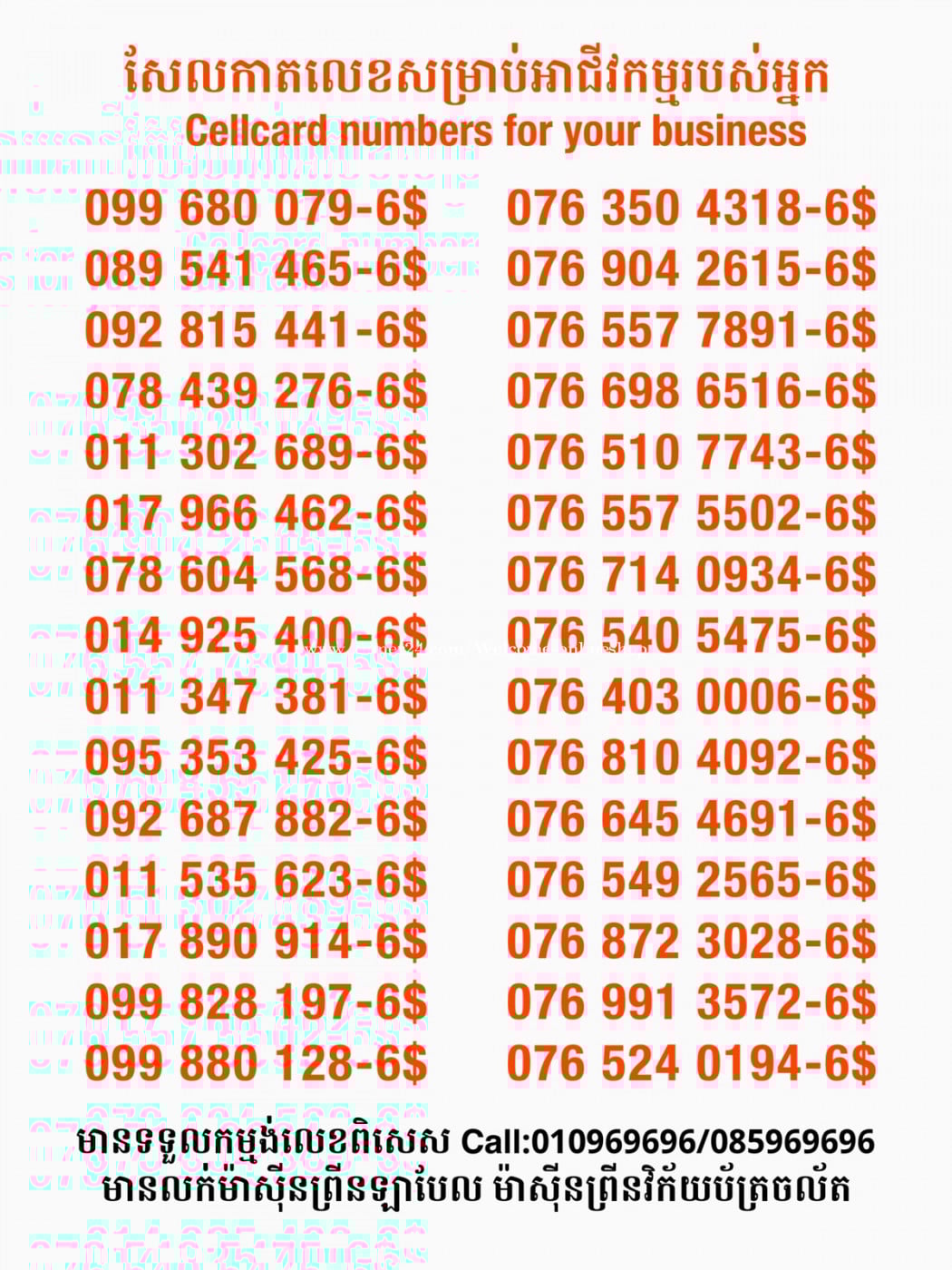 មានលក់លេខពិសេស មានទទួលកម្មង់លេខពិសេស មានលក់ម៉ាស៊ីនព្រីនឡាបែលចល័ត មានលក់ម៉ាស៊ីនព្រីនវិក័យប័ត្រចល័ត មានលក់សម្ភារៈប្រើប្រាស់ក្នុងគ្រួសារ Smart Prime II 1=30$ Smart hero 1=40$ ទូរសព្ទថ្មីក្នុងប្រអប់ លក់ធូរៗរហូតអស់ពីស្តុក អាចប្រើជាឧបករណ៍សម្រាប់ស៊ែរ wifi បាន ទំនាក់ទំនង(ខ្មែរ | English | 中文):010969696 | 085969696 Telegram: https://t.me/W9696 Telegram group: https://t.me/konkonnada អាសយដ្ឋាន:ផ្ទះលេខ២៣ ផ្លូវបេតុងលេខ១ ភូមិទួលពង្រ សង្កាត់ចោមចៅ ខណ្ឌពោធិ៍សែនជ័យ រាជធានីភ្នំពេញ ទីតាំង https://goo.gl/maps/8moqW4iTHUfJEvWQ9 ដើម្បីស្វែងរកលេខអាជីវកម្មដែលលោកអ្នកពេញចិត្ត សូមចូលទៅកាន់:https://www.khmer24.com/Welcome-onlineshop