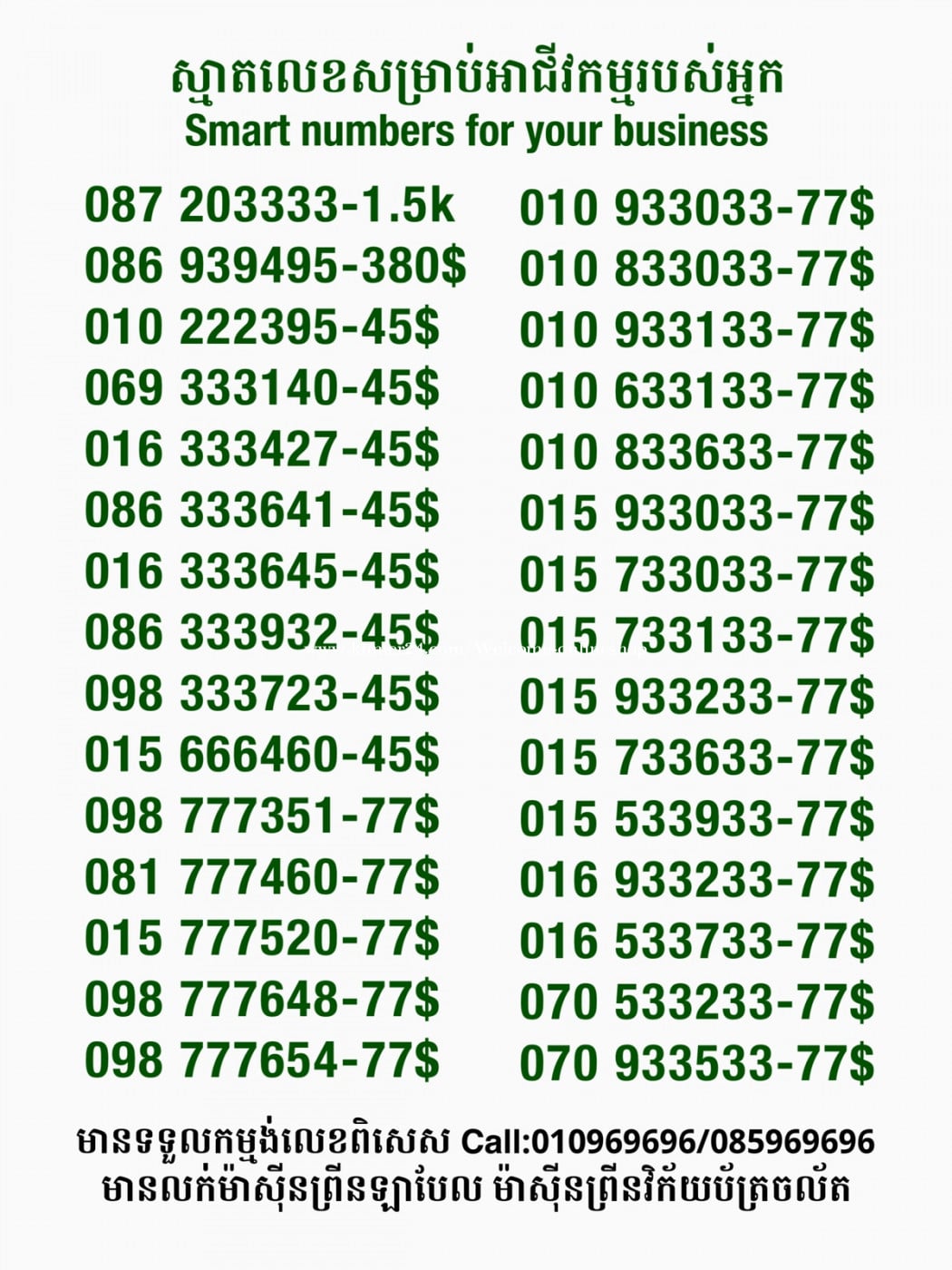 មានលក់លេខពិសេស មានទទួលកម្មង់លេខពិសេស មានលក់ម៉ាស៊ីនព្រីនឡាបែលចល័ត មានលក់ម៉ាស៊ីនព្រីនវិក័យប័ត្រចល័ត មានលក់សម្ភារៈប្រើប្រាស់ក្នុងគ្រួសារ Smart Prime II 1=30$ Smart hero 1=40$ ទូរសព្ទថ្មីក្នុងប្រអប់ លក់ធូរៗរហូតអស់ពីស្តុក អាចប្រើជាឧបករណ៍សម្រាប់ស៊ែរ wifi បាន ទំនាក់ទំនង(ខ្មែរ | English | 中文):010969696 | 085969696 Telegram: https://t.me/W9696 Telegram group: https://t.me/konkonnada អាសយដ្ឋាន:ផ្ទះលេខ២៣ ផ្លូវបេតុងលេខ១ ភូមិទួលពង្រ សង្កាត់ចោមចៅ ខណ្ឌពោធិ៍សែនជ័យ រាជធានីភ្នំពេញ ទីតាំង https://goo.gl/maps/8moqW4iTHUfJEvWQ9 ដើម្បីស្វែងរកលេខអាជីវកម្មដែលលោកអ្នកពេញចិត្ត សូមចូលទៅកាន់:https://www.khmer24.com/Welcome-onlineshop