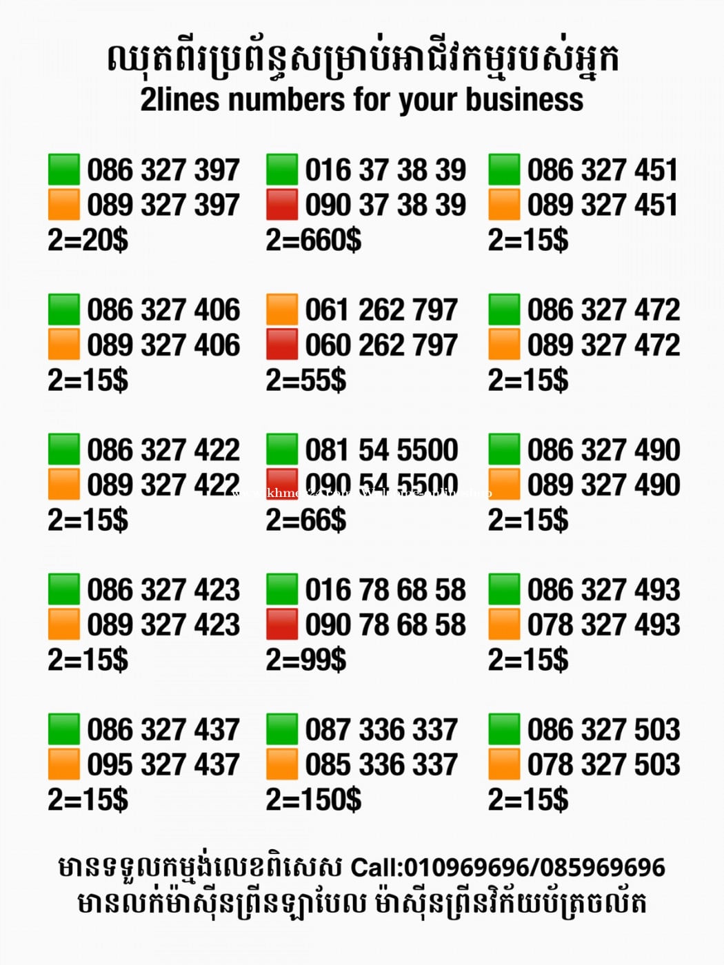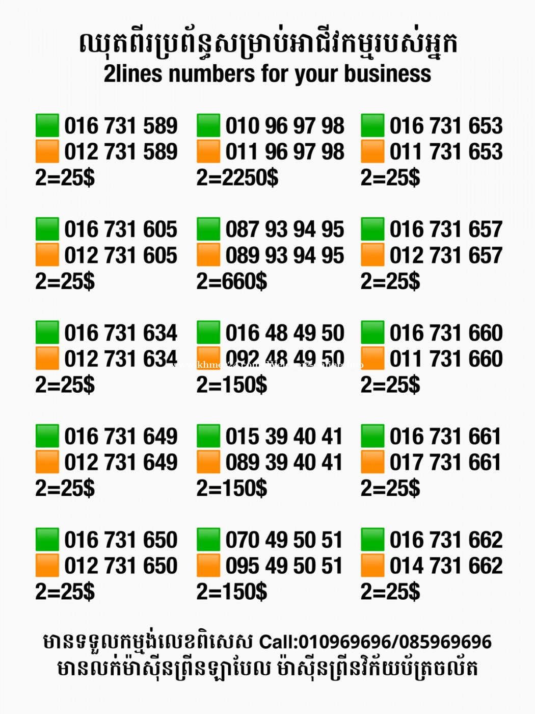 មានលក់លេខពិសេស មានទទួលកម្មង់លេខពិសេស មានលក់ម៉ាស៊ីនព្រីនឡាបែលចល័ត មានលក់ម៉ាស៊ីនព្រីនវិក័យប័ត្រចល័ត មានលក់សម្ភារៈប្រើប្រាស់ក្នុងគ្រួសារ Smart Prime II 1=30$ Smart hero 1=40$ ទូរសព្ទថ្មីក្នុងប្រអប់ លក់ធូរៗរហូតអស់ពីស្តុក អាចប្រើជាឧបករណ៍សម្រាប់ស៊ែរ wifi បាន ទំនាក់ទំនង(ខ្មែរ | English | 中文):010969696 | 085969696 Telegram: https://t.me/W9696 Telegram group: https://t.me/konkonnada អាសយដ្ឋាន:ផ្ទះលេខ២៣ ផ្លូវបេតុងលេខ១ ភូមិទួលពង្រ សង្កាត់ចោមចៅ ខណ្ឌពោធិ៍សែនជ័យ រាជធានីភ្នំពេញ ទីតាំង https://goo.gl/maps/8moqW4iTHUfJEvWQ9 ដើម្បីស្វែងរកលេខអាជីវកម្មដែលលោកអ្នកពេញចិត្ត សូមចូលទៅកាន់:https://www.khmer24.com/Welcome-onlineshop