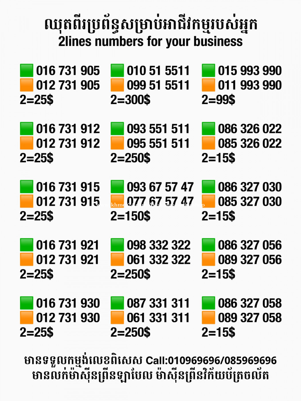 មានលក់លេខពិសេស មានទទួលកម្មង់លេខពិសេស មានលក់ម៉ាស៊ីនព្រីនឡាបែលចល័ត មានលក់ម៉ាស៊ីនព្រីនវិក័យប័ត្រចល័ត មានលក់សម្ភារៈប្រើប្រាស់ក្នុងគ្រួសារ Smart Prime II 1=30$ Smart hero 1=40$ ទូរសព្ទថ្មីក្នុងប្រអប់ លក់ធូរៗរហូតអស់ពីស្តុក អាចប្រើជាឧបករណ៍សម្រាប់ស៊ែរ wifi បាន ទំនាក់ទំនង(ខ្មែរ | English | 中文):010969696 | 085969696 Telegram: https://t.me/W9696 Telegram group: https://t.me/konkonnada អាសយដ្ឋាន:ផ្ទះលេខ២៣ ផ្លូវបេតុងលេខ១ ភូមិទួលពង្រ សង្កាត់ចោមចៅ ខណ្ឌពោធិ៍សែនជ័យ រាជធានីភ្នំពេញ ទីតាំង https://goo.gl/maps/8moqW4iTHUfJEvWQ9 ដើម្បីស្វែងរកលេខអាជីវកម្មដែលលោកអ្នកពេញចិត្ត សូមចូលទៅកាន់:https://www.khmer24.com/Welcome-onlineshop