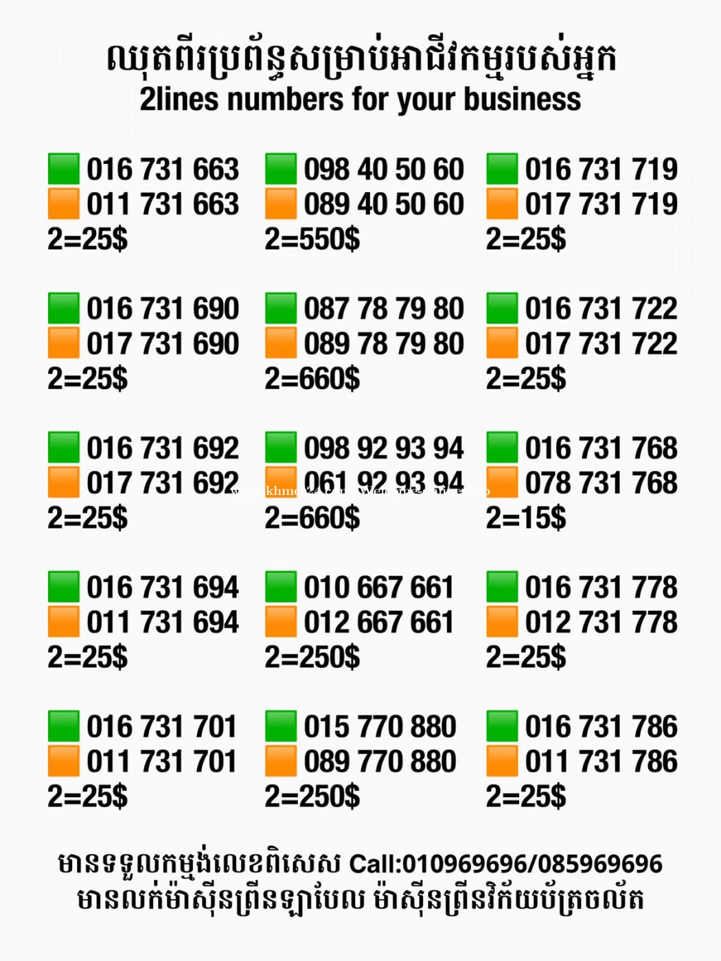 មានលក់លេខពិសេស មានទទួលកម្មង់លេខពិសេស មានលក់ម៉ាស៊ីនព្រីនឡាបែល មានលក់ម៉ាស៊ីនព្រីនវិក័យប័ត្រ មានលក់សម្ភារៈប្រើប្រាស់ក្នុងគ្រួសារ Smart Prime II 1=30$ Smart hero 1=40$ ទូរសព្ទថ្មីក្នុងប្រអប់ លក់ធូរៗរហូតអស់ពីស្តុក អាចប្រើជាឧបករណ៍សម្រាប់ស៊ែរ wifi បាន ទំនាក់ទំនង(ខ្មែរ | English | 中文):010969696 | 085969696 Telegram: https://t.me/W9696 Telegram group: https://t.me/konkonnada អាសយដ្ឋាន:ផ្ទះលេខ២៣ ផ្លូវបេតុងលេខ១ ភូមិទួលពង្រ សង្កាត់ចោមចៅ ខណ្ឌពោធិ៍សែនជ័យ រាជធានីភ្នំពេញ ទីតាំង https://goo.gl/maps/8moqW4iTHUfJEvWQ9 ដើម្បីស្វែងរកលេខអាជីវកម្មដែលលោកអ្នកពេញចិត្ត សូមចូលទៅកាន់:https://www.khmer24.com/Welcome-onlineshop