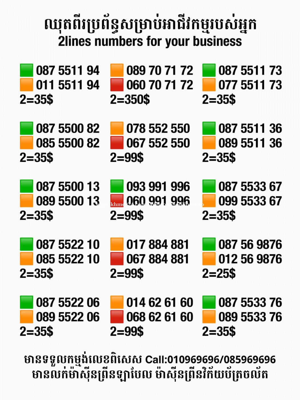 មានលក់លេខពិសេស មានទទួលកម្មង់លេខពិសេស មានលក់ម៉ាស៊ីនព្រីនឡាបែល មានលក់ម៉ាស៊ីនព្រីនវិក័យប័ត្រ មានលក់សម្ភារៈប្រើប្រាស់ក្នុងគ្រួសារ Smart Prime II 1=30$ Smart hero 1=40$ ទូរសព្ទថ្មីក្នុងប្រអប់ លក់ធូរៗរហូតអស់ពីស្តុក អាចប្រើជាឧបករណ៍សម្រាប់ស៊ែរ wifi បាន ទំនាក់ទំនង(ខ្មែរ | English | 中文):010969696 | 085969696 Telegram: https://t.me/W9696 Telegram group: https://t.me/konkonnada អាសយដ្ឋាន:ផ្ទះលេខ២៣ ផ្លូវបេតុងលេខ១ ភូមិទួលពង្រ សង្កាត់ចោមចៅ ខណ្ឌពោធិ៍សែនជ័យ រាជធានីភ្នំពេញ ទីតាំង https://goo.gl/maps/8moqW4iTHUfJEvWQ9 ដើម្បីស្វែងរកលេខអាជីវកម្មដែលលោកអ្នកពេញចិត្ត សូមចូលទៅកាន់:https://www.khmer24.com/Welcome-onlineshop