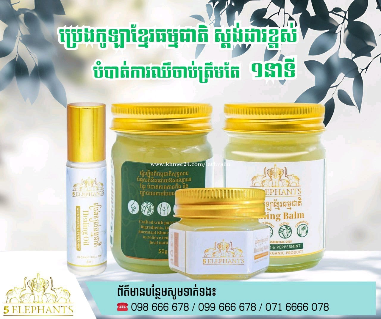 ប្រេងកូឡាសញ្ញាដំរី៥ ជាដៃគូដ៏ល្អសម្រាប់ពុកម៉ែបងប្អូន ជាផលិតផលស្នាដៃកូនខ្មែរ ដែលមានរោងចក្រក្នុងស្រុក ជាពិសេសផលិតផលខ្មែរ គុណភាពលំដាប់អន្តរជាតិ 💯🥰❤️ 👉 ប្រេងកូឡា និង ប្រេងខ្យល់ខ្មែរសញ្ញាដំរី៥ កាត់បន្ថយការឈឺចុកចាប់ត្រឹមតែ១នាទី សម្រាប់ព័ត៌មានបន្ថែមសូមទាក់ទង៖ ☎️ Phone Number: 099666xxxClick To Call / 098666xxxClick To Call/093300xxxClick To Call Telegram Channel: https://t.me/five5_Elephents #5Elephants #ប្រេងកូឡាប្រេងខ្យល់សញ្ញាដំរី៥