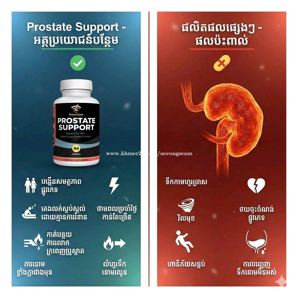 កុំបណ្តោយឱ្យបញ្ហានោមរំខានដល់ក្តីសុខ និងទំនុកចិត្តរបស់បងៗ! 🛡️✨ តើបងៗកំពុងហត់នឿយនឹងការក្រោកនោមញឹកនៅពេលយប់ ឬបារម្ភពីសុខភាពតម្រង់នោមមែនទេ? Prostate Support គឺជាជំនួយការដ៏ចម្បងសម្រាប់សុខភាពបុរស៖ ✅ ដោះស្រាយបញ្ហា៖ នោមញឹក នោមទាស់ និងការពារការរលាកក្រពេញប្រូស្តាត។ ✅ គុណភាព៖ ស្តង់ដារសុទ្ធពីអាមេរិក ជឿជាក់បាន ១០០%។ ✅ ចំណេញ៖ ១ ទីបមាន ៩០ គ្រាប់ ប្រើបានយូរ និងមានប្រសិទ្ធភាព។ 👉 សុខភាពល្អ នាំមកនូវភាពជឿជាក់! កម្ម៉ង់ថ្ងៃនេះ ដើម្បីជីវិតរីករាយជាងមុន។