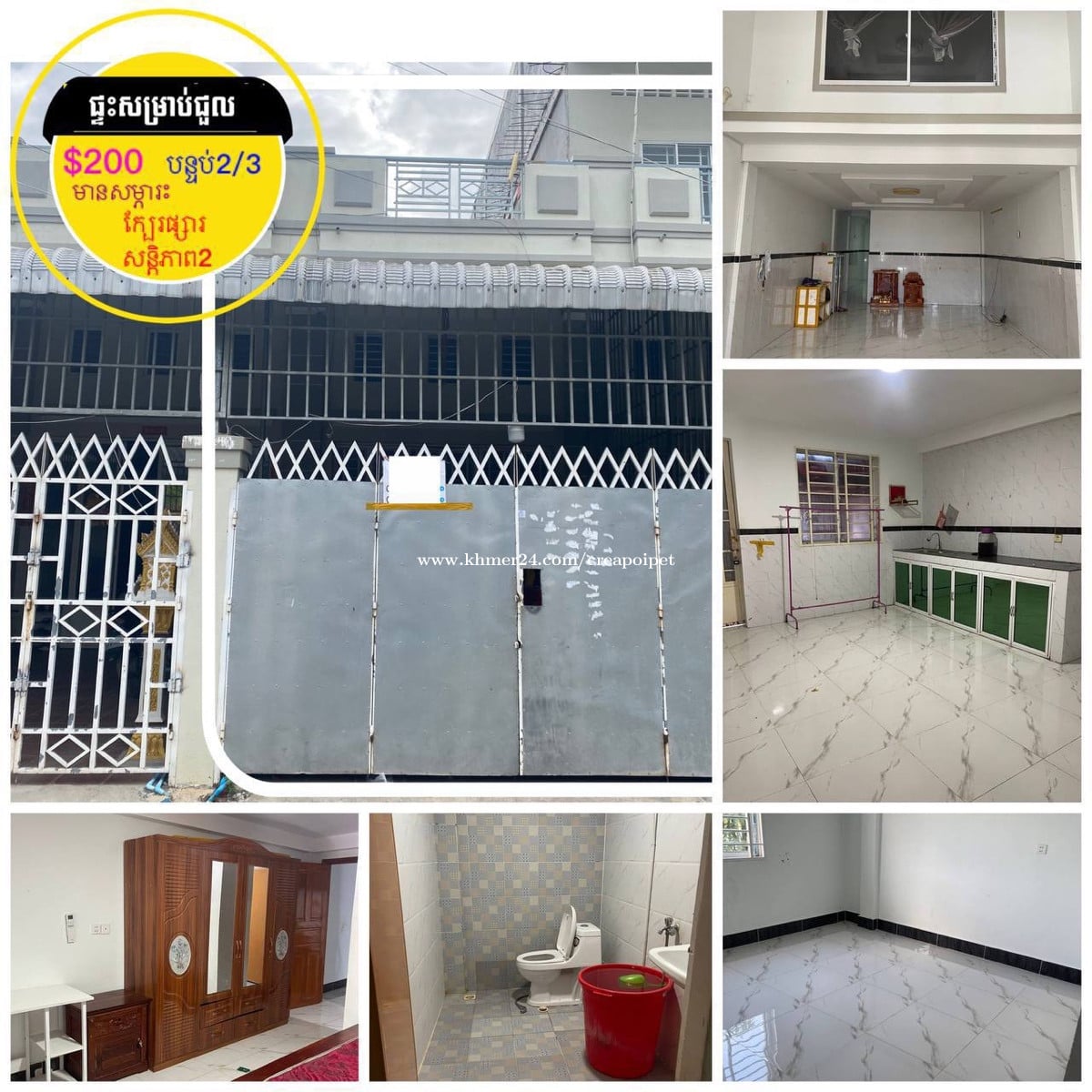 #ផ្ទះជួលមានសម្ភារះក្បែរផ្លូវធំ ចំណតបេនឡានក្រុងបុរីសន្តិភាព2 -តំលៃជួល $200 👉សម្ភារះរួមមាន: -ម៉ាសុីនត្រជាក់2គ្រឿង -គ្រែពូក1បន្ទប់ -ខ្នាតផ្ទះ 4.2ឞ x 16ម -មុខផ្ទះ4,ក្រោយ1 -ក្បែរផ្លូវធំ ក្បែរផ្សារសន្តិភាព2 ☎️ 070418xxxClick To Call | 078418xxxClick To Call Telegram : https://t.me/Sienghai 1. SIENGHAI Channel : https://t.me/sienghaioucrea 2. HOUSE SALE : https://t.me/creasale 3. HOUSE RENT : https://t.me/crearent 4. Condo & Apartment : https://t.me/creaozone 5. Commercial Bulding : https://t.me/creabizzone 6. LAND : https://t.me/CREAAILAND
