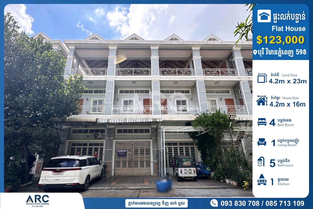 #Flat House For Sale at Borey Vimean Phnom Penh 598 #ផ្ទះល្វែងដាក់លក់បន្ទាន់នៅក្នុងបុរី វិមានភ្នំពេញ 598 ជិតផ្សារទំនេីបអុីអន២ 🔹 តម្លៃលក់ក្រោមទីផ្សារ : $123,000 (ចរចាម្ចាស់ផ្ទាល់) 🔹 កាត់ឈ្មោះប្លង់រឹងជូន 🔹 ទំហំដី : 4.2m x 23m 🔹 ទំហំផ្ទះ : 4.2m x 16m 🔹 បន្ទប់គេង : 04 បន្ទប់ទឹក : 05 📍ទីតាំងត្រឹមតែ07នាទីពីផ្សារទំនើប AEON2 Makro សង្កាត់ច្រាំងចំរេះទី១ ,ខណ្ឌឬស្សីកែវ ,រាជធានីភ្នំពេញ សម្រាប់ពត៏មានលម្អិតសូមទំនាក់ទំនងមកក្រុមការងារ 085713xxxClick To Call / 093830xxxClick To Call / 0978899xxxClick To Call Chat to Telegram Agent https://t.me/sonsela14 Channel Telegram https://t.me/ARCKhanResseykeo 👉 អាជ្ញាប័ណ្ណ៖ EV-08-069