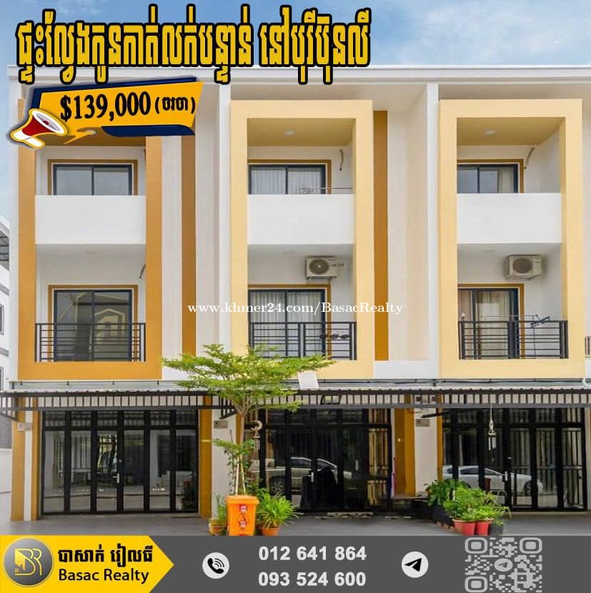🏠ផ្ទះល្វែងកូនកាត់លក់បន្ទាន់ នៅក្នុងបុរីប៊ុនលី មានសួនច្បារធំទូលាយ និងសួនកុមារ * តម្លៃលក់ | Sale Price: $139,000 (ចរចា) * ទំហំផ្ទះ | House Size: 4.2m x 14m * ទំហំដី | Land Size: 4.2m x 21.5m * បន្ទប់គេង | Bedroom: 04 * បន្ទប់ទឹក | Bathroom: 05 👉 សុវត្ថិភាព24ម៉ោង 📍ទីតាំងគម្រោង 5នាទីពីស្ពានដែក ចុះពីផ្លូវធំចំការដូង (217) 500 ម៉ែត្រ។