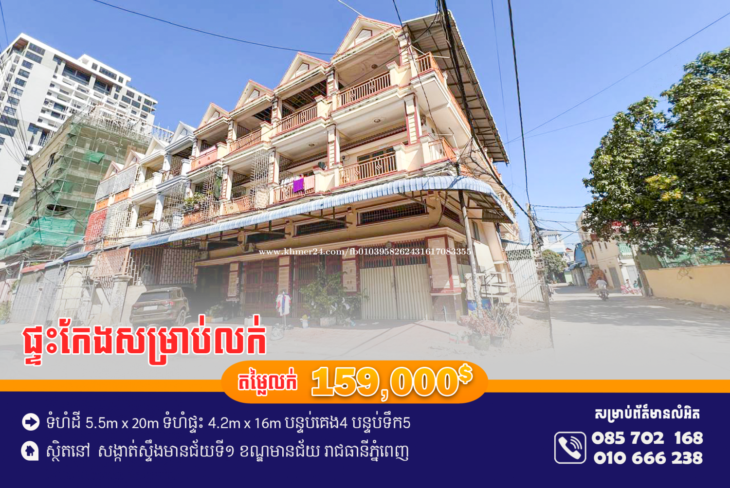 ផ្ទះល្វែងកែងសម្រាប់លក់ ស្ថិតនៅម្តុំវត្តស្ទឹងមានជ័យ សំណង់ផ្ទះនៅថ្មីស្អាត បន្ទប់ធំទូលាយ ហើយនៅកណ្តាលក្រុងទៀត 📍ទីតាំងស្ថិនៅ សង្កាត់ស្ទឹងមានជ័យទី១ ខណ្ឌមានជ័យ ភ្នំពេញ ◈━━━━━━━━━━━━◈ តម្លៃលក់| Sale Price $159,000 ចរចា ទំហំផ្ទះ 4.2m x 16m បន្ទប់គេង 4 បន្ទប់ទឹក5 ◈━━━━━━━━━━━━◈ 📍សូមចូលទៅកាន់𝗧𝗲𝗹𝗲𝗴𝗿𝗮𝗺 𝗖𝗵𝗮𝗻𝗻𝗲𝗹ពេលនេះ ដើម្បីស្វែងរកអចលនទ្រព្យពិសេសផ្សេងទៀត៖ 🔗 𝐓𝐞𝐥𝐞. 𝐂𝐡𝐚𝐧𝐧𝐞𝐥:𝗵𝘁𝘁𝗽𝘀://𝘁.𝗺𝗲/𝗦𝗼𝗸𝗵𝗮𝗶𝗥𝗲𝗮𝗹𝘁𝘆 ☎️ 𝗧𝗲𝗹𝗲𝗴𝗿𝗮𝗺:𝟬𝟭𝟬 𝟲𝟲𝟲 𝟮𝟯𝟴 ☎️ 𝗧𝗲𝗹𝗲𝗴𝗿𝗮𝗺:𝟬𝟴𝟱 𝟳𝟬𝟮 𝟭𝟲𝟴