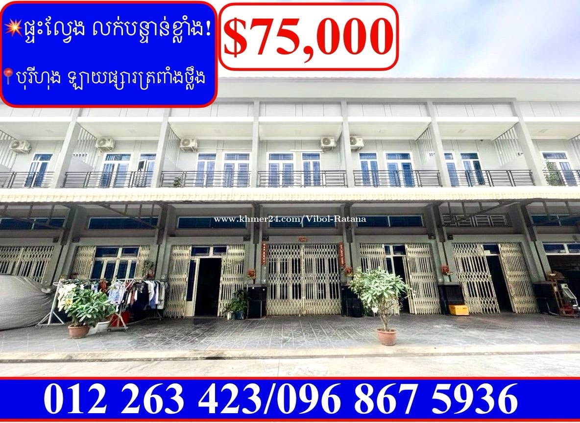 💥ផ្ទះល្វែង លក់បន្ទាន់ខ្លាំង! តម្លៃក្រោមទីផ្សារខ្លាំង នៅបុរីហុង ឡាយផ្សារត្រពាំងថ្លឹង (Code: F-00026) »»»»»»»»»តម្លៃពិសេសជាងគេ««««« ✅តម្លៃលក់: $75,000 ចរចា (តម្លៃក្រោមទីផ្សារខ្លាំង) ✅ទំហំដី: 4.1m x 17.80m ✅ទំហំផ្ទះ: 4.1m x 12m ✅បន្ទប់គេង 3 បន្ទប់ទឹក 4 ✅ផ្ទេរកម្មសិទ្ធិប្លង់រឹង ☎️•0968675xxxClick To Call Smart •012263xxxClick To Call Cellcard 👉Telegram: 012263xxxClick To Call https://t.me/Ratanarealtor168 👉ព័ត៍មានផ្ទះផ្សេងៗ លក់បន្ទាន់ តាមទីតាំងដែលលោកអ្នកចង់បាន៖ https://t.me/ratanarealtorH168
