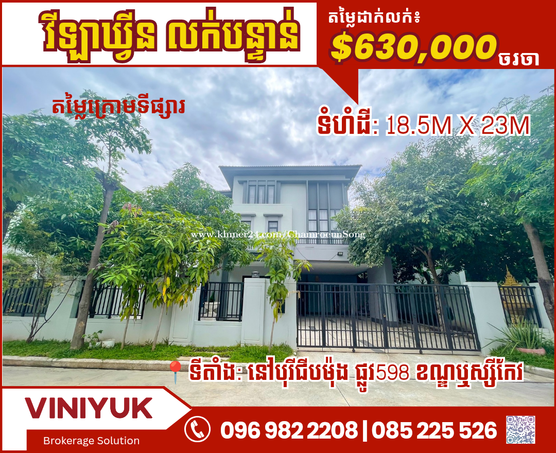 ផ្ទះវីឡាឃ្វីនលក់បន្ទាន់!! 📍 ទីតាំង ៖ នៅបុរីជីបម៉ុង ផ្លូ598 ខណ្ឌឬស្សីកែវ រាជធានីភ្នំពេញ 💲តម្លៃលក់: $630,000 ចរចា 🔹️ទំហំដី : 18.5m x 23m 🔹️ទំហំផ្ទះ : 13m x 13m 🔹️បន្ទប់គេង 6 , បន្ទប់ទឹក 8 🔹️ផ្ទះបាយ 1 , កន្លែងទទួលភ្ញៀវ 1 🔹️ទិសបែរខាងជើង 🔹️ប្លង់រឹង ⏭️️លេខអាជ្ញាប័ណ្ណ : 𝐄-𝟐𝟐-𝟒𝟎𝟒 📲សម្រាប់ព័ត៌មានលម្អិត ៖ 0969822xxxClick To Call | 085225xxxClick To Call Telegram: https://t.me/Chamroeun_Song ⭐️ 𝐉𝐨𝐢𝐧 𝐓𝐞𝐥𝐞𝐠𝐫𝐚𝐦 𝐂𝐡𝐚𝐧𝐧𝐞𝐥 https://t.me/chamroeun_viniyuk សូមអរគុណ!! #តម្លៃល្អ #villaforsale #អចលនទ្រព្យ #forsale #trending #houseforsale #foryou #បុរីជីបម៉ុង598 #វីឡាឃ្វីន