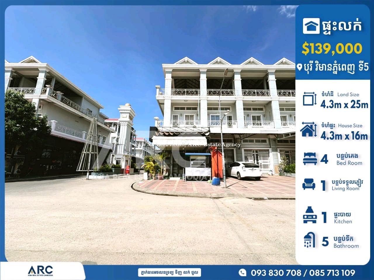 #Shop House For Sale at Borey Vimean Phnom Penh 598 #ផ្ទះអាជីវកម្មដាក់លក់បន្ទាន់នៅក្នុងបុរី វិមានភ្នំពេញ 598 គម្រោងទី05 ជិតផ្សារទំនេីបអុីអន២ 🔹 តម្លៃលក់ក្រោមទីផ្សារ : $139,000 ( ចរចម្ចាស់ផ្ទាល់ ) 🔹 កាត់ឈ្មោះប្លង់រឹងជូន 🔹 ទំហំដី : 4.3m x 25m 🔹 ទំហំផ្ទះ : 4.3m x 16m 🔹 បន្ទប់គេង : 04 បន្ទប់ទឹក : 05 📍ទីតាំងត្រឹមតែ10នាទីពីផ្សារទំនើប AEON2 ផ្សារទំនើបម៉ាក្រូ នៅជិតក្រសួងរៀបចំដែនដី ហ្រ្គេនភ្នំពេញ សុីធី សម្រាប់ពត៏មានលម្អិតសូមទំនាក់ទំនងមកក្រុមការងារ 085713xxxClick To Call / 093830xxxClick To Call / 0978899xxxClick To Call Chat to Telegram Agent https://t.me/sonsela14 Channel Telegram https://t.me/ARCKhanResseykeo 👉 អាជ្ញាប័ណ្ណ៖ EV-08-069