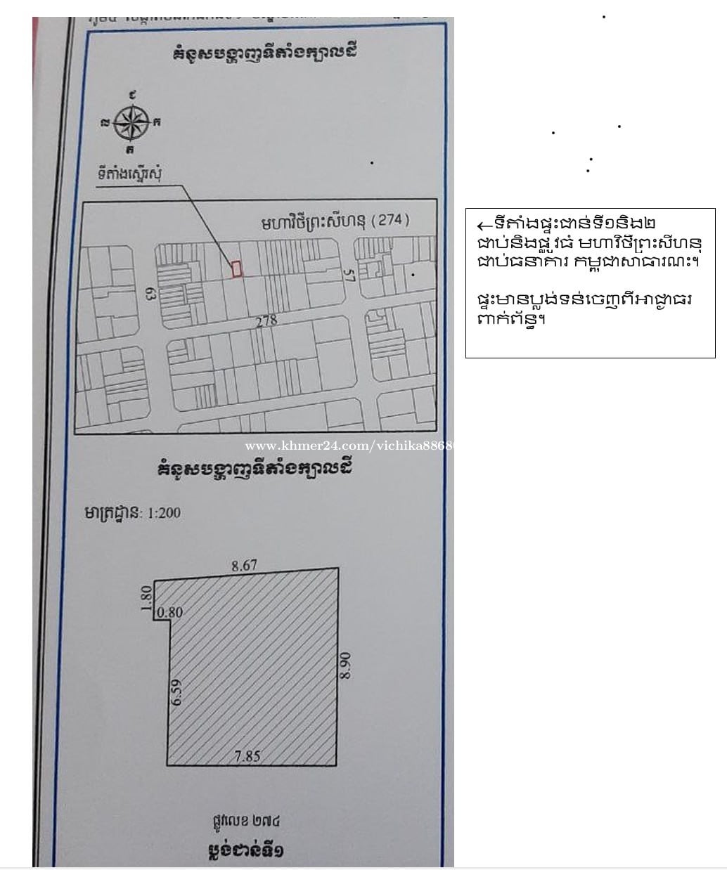 600000$ negotiations with soft title. The house the left next to the bank and the back next to hotel. Face front to Main Street on Sihanouk blvd phnom phen, chamkamorn, BKK1. Former rent room which have 2 floors, 7 bed rooms and 3 bathrooms. តម្លៃ 600000$ ចរចារ ផ្ទះអតីត អាជីវកម្មបន្ទប់ជួលមាន ២ជាន់ និង ៧ បន្ទប់គេង និង បន្ទប់ទឹក ៣ មុខបែរទៅផ្លូវធំ មានច្រកចូល៕ ខាង ឆ្វេងជាប់និង ធនាគារ ខាង ក្រោយជាប់និងសណ្នារគារ . ល្អសំរាប់អ្នកចង់ទិញទុកវិនិយោគ ព្រងីកទីតាំងហាង រឺសាងសង់អាគារតភ្ជាប់ ទំនាក់ទំនងតាម Contact telegram : https://t.me/KH988978