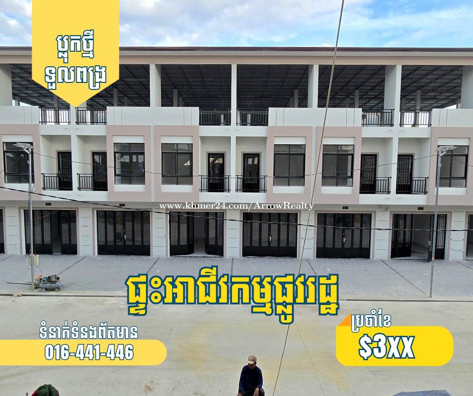 ប្លុកថ្មីទួលពង្រ ផ្ទះអាជីវកម្មផ្លូវរដ្ឋ តម្លៃជាង$7xxxx ប្រចាំខែតែ$399