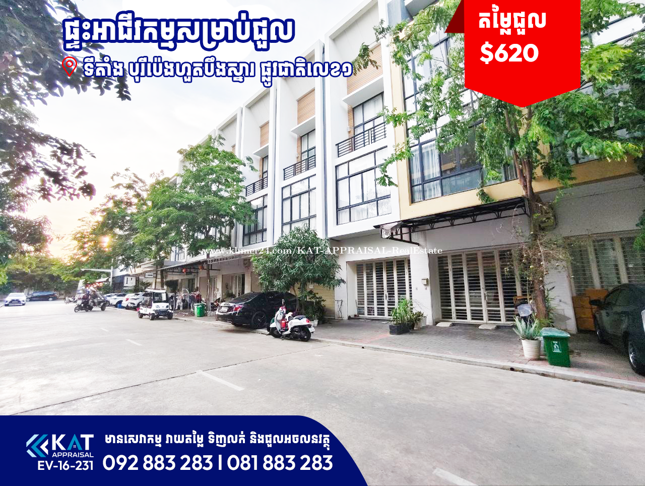 ផ្ទះអាជីវកម្មសម្រាប់ជួលគម្រោងប៉ូឡារីស2 | Shophouse For Rent - តម្លៃជួលចរចា | Rent Price: $620 - ទំហំដី | Land Size: 4.2m x 19m - ទំហំផ្ទះ | House Size: 4.2m x 12m - បន្ទប់គេង | Bedroom: 4 - បន្ទប់ទឹក | Bathroom: 5 -កំពស់ 3 floor | E0E1E2 - ទិស | ខាងជើង | Direction | North -មានវាំងននពេញ/ ម៉ាស៊ីនត្រជាក់ 4 -កុងត្រា1ឆ្នាំឡើង (កក់2ខែបង់1ខែ) - ទីតាំង/ Location: បុរីប៉េងហួតបឹងស្នោ, សង្កាត់វាលស្បូវ, ខណ្ឌច្បារអំពៅ, រាជធានីភ្នំពេញ ។ Tel: 092883xxxClick To Call l 081883xxxClick To Call Telegram Chat : https://t.me/katappraisalsupport Telegram Channel : https://t.me/KAT_APPRAISAL