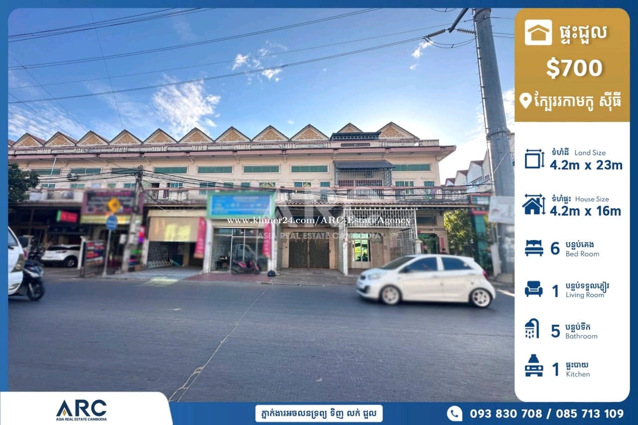#ផ្ទះអាជីវកម្មដាក់ជួលបន្ទាន់នៅក្បែរកាំកូ សុីធី 🔹 តម្លៃជួល / Rent Price $700 (ចរចាបាន ) 🔹 ទំហំផ្ទះ/ House size: 4.2m x 16m 🔹 ទំហំដី / land size: 4.2m x 23m 🔹 បន្ទប់គេង/ Bedroom: 06 🔹 បន្ទប់ទឹក/ Bathroom: 05 出租价格:700 美金/可谈 房间数量:06房 , 05卫 配套设施:家具齐全 建筑面积:4.2米 X 16米 土地面积:4.2米 X 23米 សម្រាប់ពត៏មានលម្អិតសូមទំនាក់ទំនងមកក្រុមការងារ 085713xxxClick To Call / 093830xxxClick To Call / 0978899xxxClick To Call Chat to Telegram Agent https://t.me/sonsela14 Channel Telegram https://t.me/ARCKhanResseykeo 👉 អាជ្ញាប័ណ្ណ៖ EV-08-069