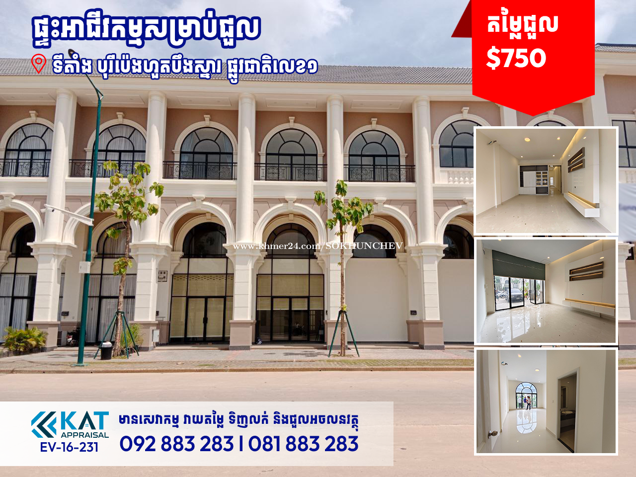 ផ្ទះអាជីវកម្មសម្រាប់ជួលលើផ្លូវធំសាន់រ៉ាយ l Shophouse For Rent, Eco Sunrise - តម្លៃជួល | Rent Price: $750 - ទំហំផ្ទះ | House Size: 4.5m x 14m - ទំហំដី | Land Size: 4.5m x 21m - បន្ទប់គេង Bedroom: 4 - បន្ទប់ទឹក | Bathroom: 5 - បន្ទប់ទទួលភ្ញៀវ| Living: 1 - ផ្ទះបាយ| Kitchen: 1 - កំពស់ 3ជាន់ | E0E1E2 - កុងត្រា 2ឆ្នាំ (កក់2ខែ) ទីតាំង/ Location: ភូមិស្វាយតាអុក, សង្កាត់វាលស្បូវ, ខណ្ឌច្បារអំពៅ។ Tel: 092883xxxClick To Call l 081883xxxClick To Call Telegram Chat : https://t.me/katappraisalsupport Telegram Channel : https://t.me/KAT_APPRAISAL