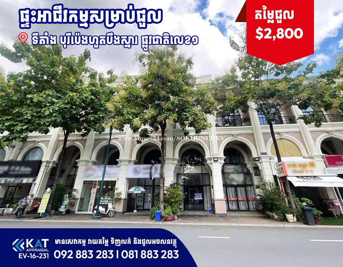 ផ្ទះអាជីវកម្មសម្រាប់ជួល 2ល្វែង ទីតាំងល្អ ងាយស្រួលបើកអាជីវកម្ម ទល់មុខតារាងបាល់ នឹង សាលា ម៉ាត .. -តម្លៃ ចរចា | Asking Price: $ 2,800 -ទំហំផ្ទះ | House Size: 9 m x 14m - ទំហំដី | Land Size: 9m x 21m -បន្ទប់គេង | Bedroom: 08 -បន្ទប់ទឹក | Bathroom: 10 -ទីតាំង/ Location: បុរីប៉េងហួតបឹងស្នោរ, ខណ្ឌច្បារអំពៅ, ភ្នំពេញ Tel: 092883xxxClick To Call l 081883xxxClick To Call Telegram Chat : https://t.me/katappraisalsupport Telegram Channel : https://t.me/KAT_APPRAISAL