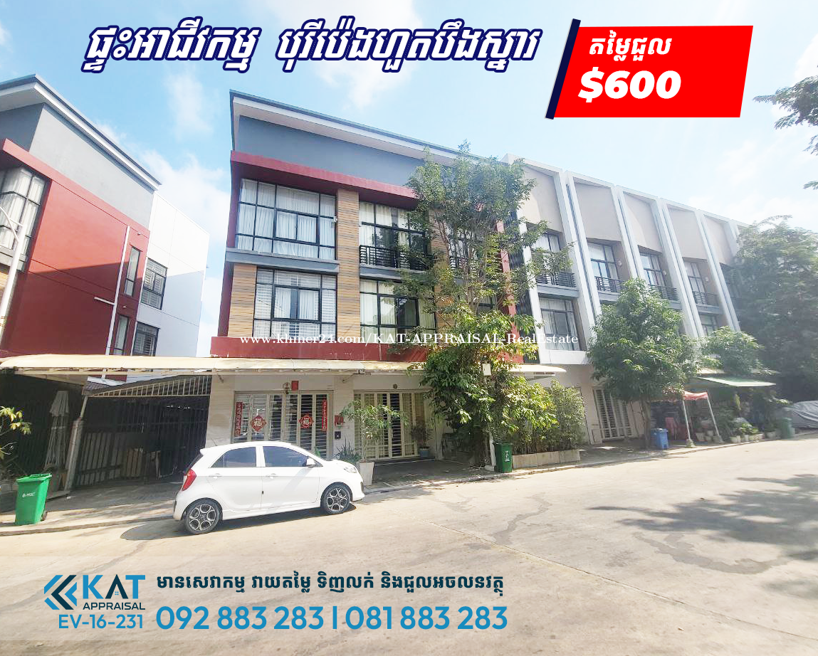 ផ្ទះអាជីវកម្មសម្រាប់ជួល l Shophouse For Rent - តម្លៃ | Price: $600 - ទំហំផ្ទះ | House Size: 4.2m x 10m - ទំហំដី | Land Size: 4.2m x 17m - បន្ទប់គេង | Bedroom: 4 - បន្ទប់ទឹក| Bathroom: 5 -បែរទិសខាងកើត | Face to East សំភារះម៉ាសុីនត្រជាក់5និងវាំងនន - ទីតាំង| Location: ភូមិស្វាយតាអ៊ុក, សង្កាត់វាលស្បូវ, ខណ្ឌច្បារអំពៅ, រាជធានីភ្នំពេញ ។ Tel: 092883xxxClick To Call l 081883xxxClick To Call Telegram Chat : https://t.me/katappraisalsupport Telegram Channel : https://t.me/KAT_APPRAISAL