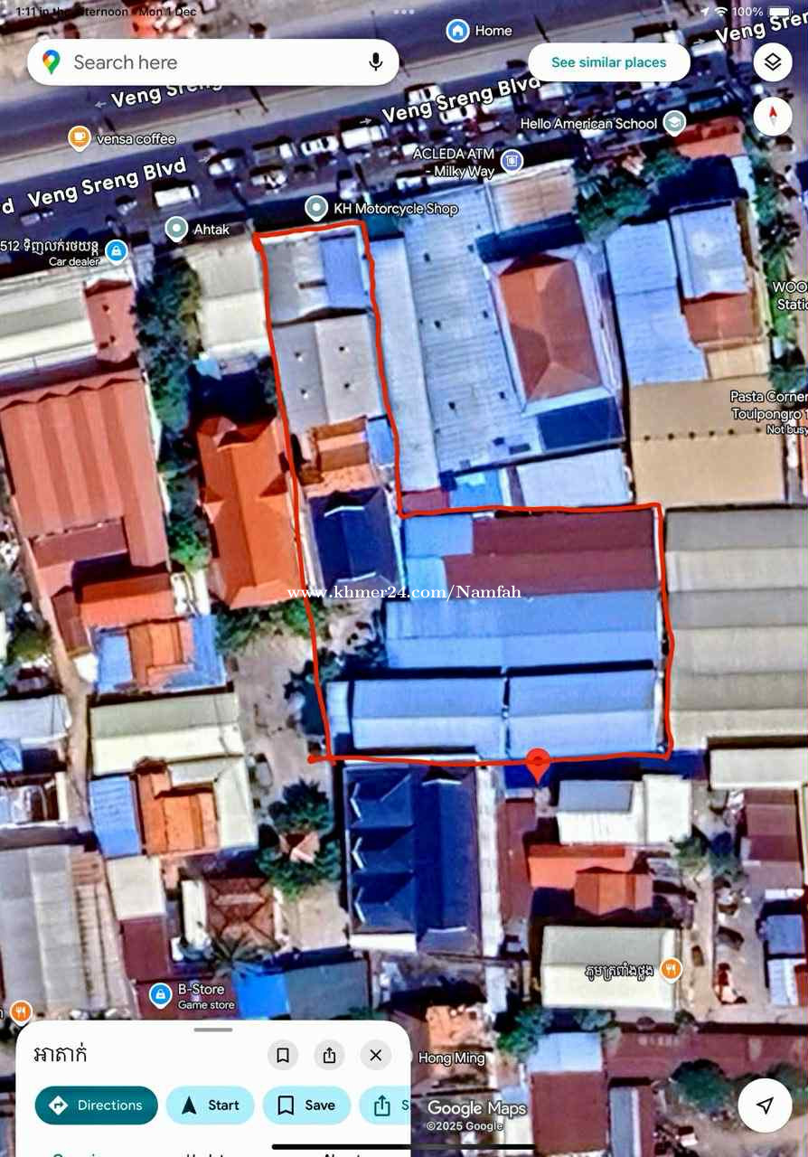 តម្លៃចរចាបានទៀត! តំបន់អាជីកម្ម មានសក្តានុពលខ្ពស់! ទំហំដីសរុប 2266 ម៉ែត្រការ៉េ I. ចំណូលប្រចាំខែ 1. ឃ្លាំងជួល:1380$ 2. បន្ទប់ជួលសរុប: 91បន្ទប់ - 23បន្ទប់តម្លៃ50$: 1150$ - 24បន្ទប់តម្លៃ45$ :1080$ - 44បន្ទប់តម្លៃ40$ :1760$ ***ចំណូលជួលសរុបប្រចាំខែ5370$ បើចាប់អារម្មណ៍ សុំទាក់ទងមកលេខ 095444xxxClick To Call/066444xxxClick To Call