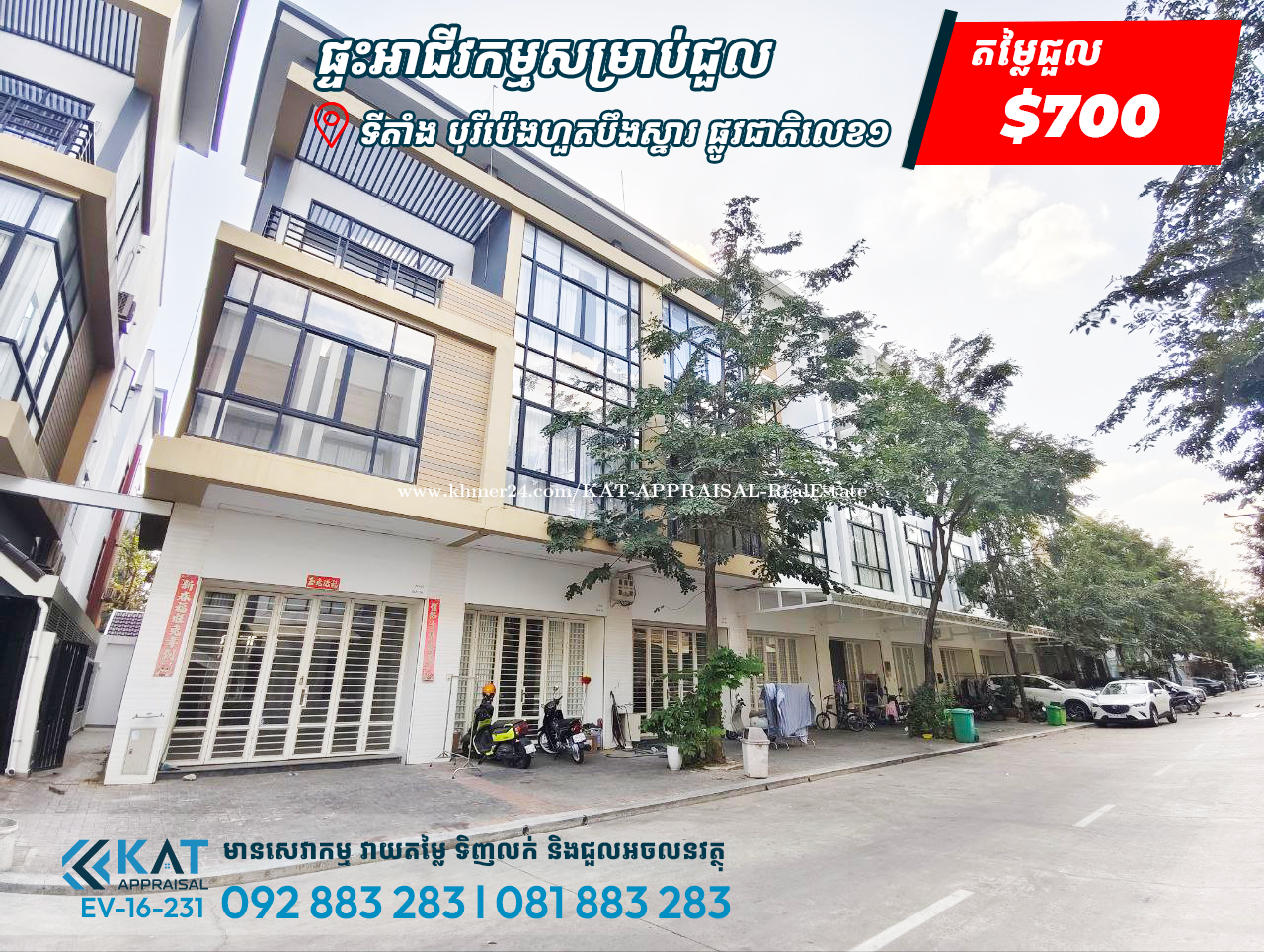 ផ្ទះអាជីវកម្ម(សល់ដីចំហៀង)សម្រាប់ជួល | Shophouse For Rent - បុរីប៉េងហួតបឹងស្នោរ | Polaris 2 - តម្លៃដាក់ជួល | Rent Price: $700 - ទំហំដី | Land Size: 5.5m x 19m - ទំហំផ្ទះ | House size: 4.2m x 12m - បន្ទប់គេង | Bedroom: 4 - បន្ទប់ទឹក | Bathroom: 5 - កំពស់ ៣ជាន់ពេញ| 3 floor -បែរទិសជើង| To North -ទីតាំង | Location: សង្កាត់វាលស្បូវ, ខណ្ឌច្បារអំពៅ, រាជធានីភ្នំពេញ។ Tel: 092883xxxClick To Call l 081883xxxClick To Call Telegram Chat : https://t.me/katappraisalsupport Telegram Channel : https://t.me/KAT_APPRAISAL