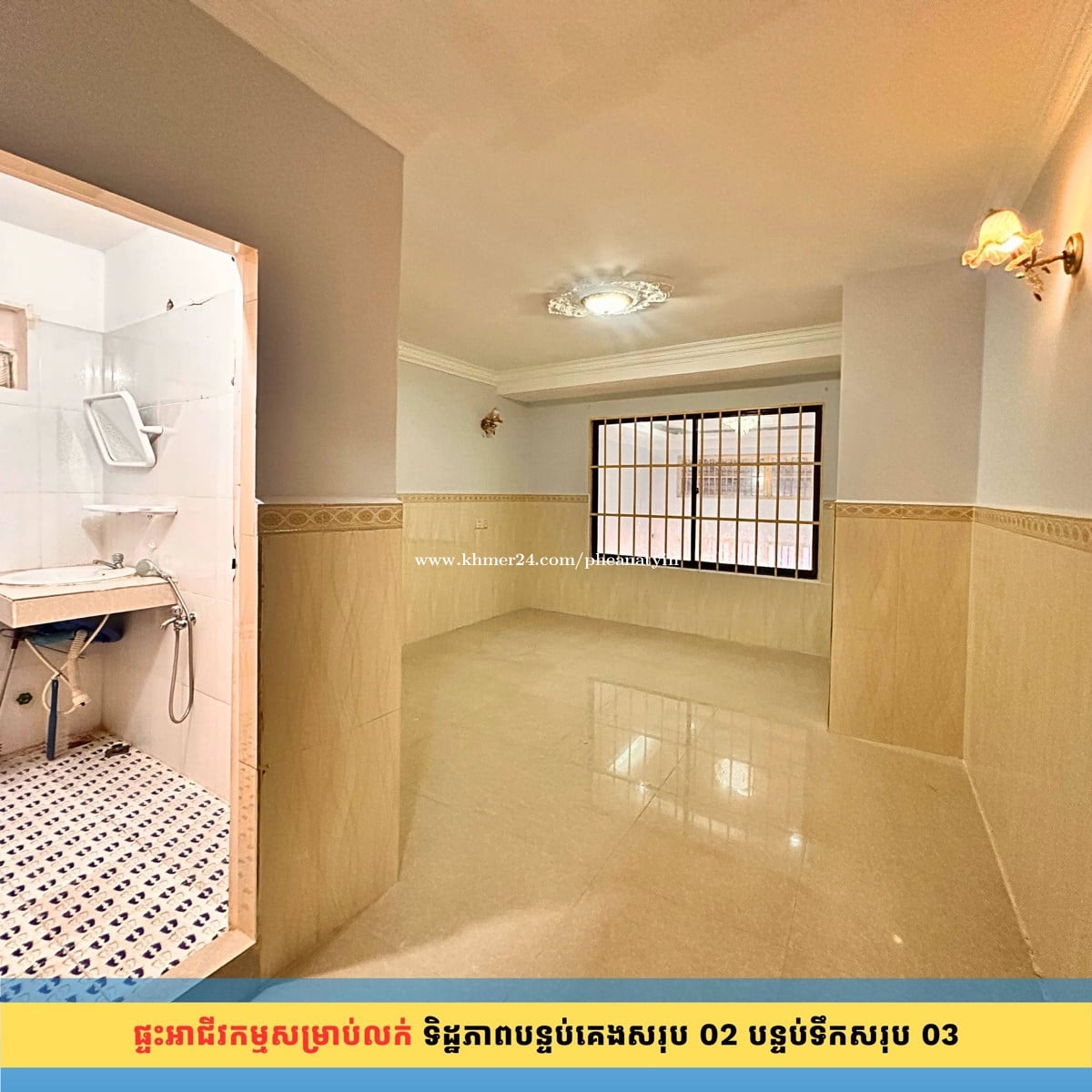 111-ផ្ទះអាជីវកម្មតម្លៃល្អ ជាប់ផ្លូវមេអ៊ូអរ ត្រឹមតែ 80m ពីវត្តតាំងក្រសាំងខាងជើង * តម្លៃលក់ | Price: $76,000 ចរចា . ដីទំហំ | Size : 5m x 20m . ផ្ទះទំហំ | Size : 4m x 14m បន្ទប់គេង 02 បន្ទប់ទឹក 03 . សល់ខាងមុខ 6m សល់ចំហៀង 1m . ផ្ទះកម្ពស់ ១សន្លឹកកន្លះ អាចសង់ឡើងបានទៀត ផ្ទះបែរមុខទៅទិសខាងជើង ប្រើប្រព័ន្ធភ្លើង 32អំពែ . ផ្លូវទំហំ 10m ផ្លូវរដ្ឋអ៊ូអរមិនទាល់។ * (ចរចារត្រូវកាត់ប្លង់ជូន) 📍ទីតាំង៖ ភូមិព្រៃសាលា សង្កាត់កាកាបទី២ ខណ្ឌពោធិ៍សែនជ័យ រាជធានីភ្នំពេញ។ - 80m ពីវត្តតាំងក្រសាំងខាងជើង - 300m ពីផ្សារ K C - 800m ពីផ្សារតាំងក្រសាំងថ្មី 💁 សូមទំនាក់ទំនង ៖ ☎️ (Cellcard): 0762222xxxClick To Call ☎️ (Smart) : 0967985xxxClick To Call ☎️ (Metfone): 0887905xxxClick To Call ↗️Telegram: https://t.me/Yin_Pheanat666 + យើងខ្ញុំមានសេវាធនាគារល្អៗជូន បើសិនជាអតិថិជនត្រូវការ។🙏