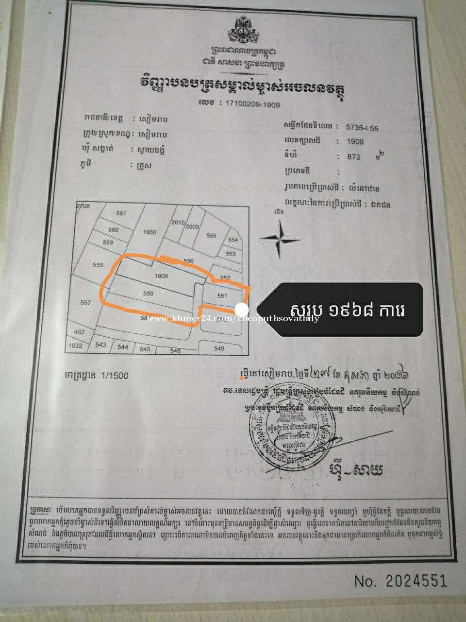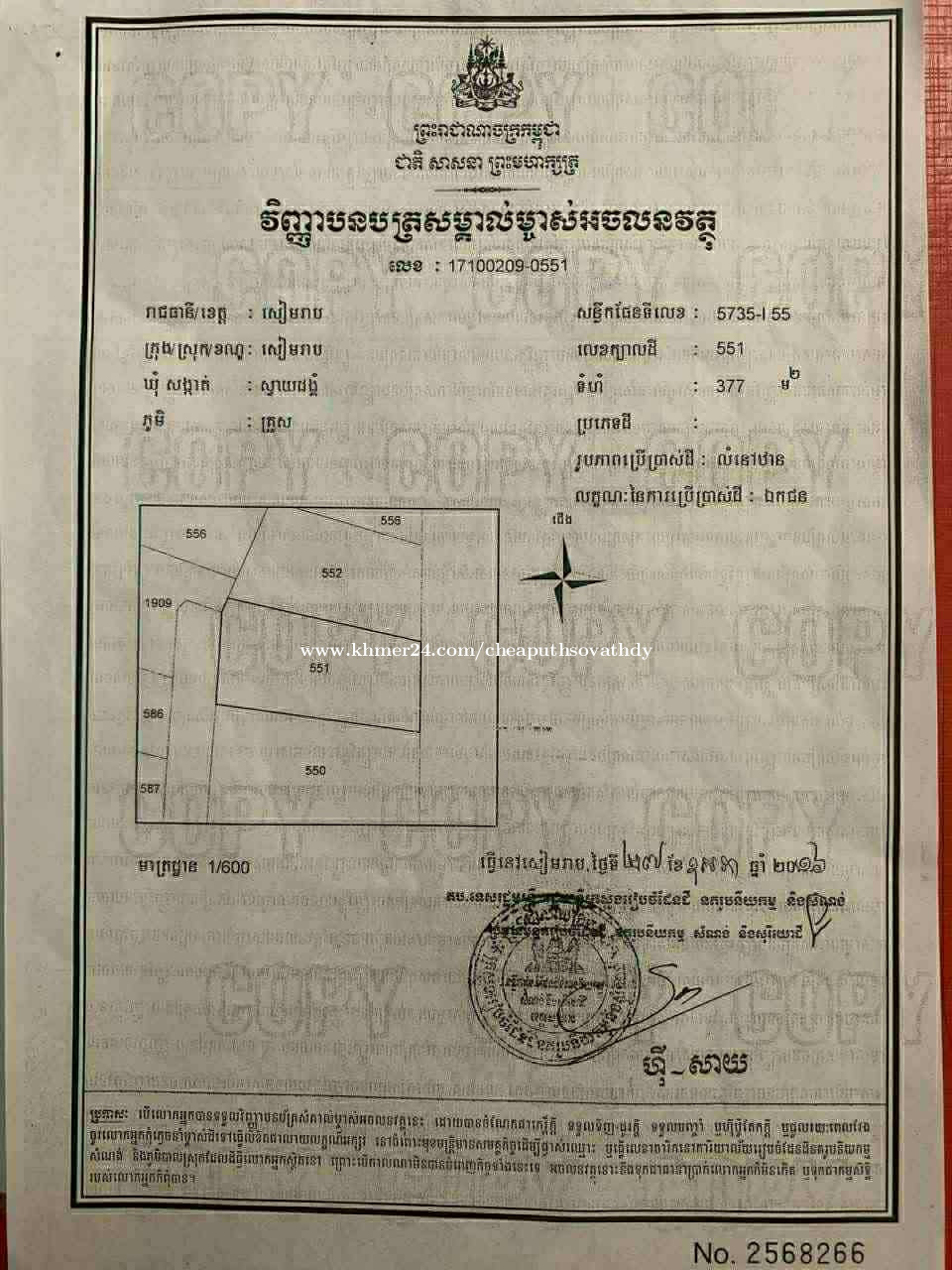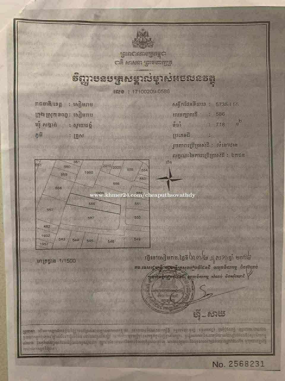 ‼️ ដីនិងផ្ទះសំរាប់លក់ ជិតសាលារៀន ផ្លូវក្រវ៉ាត់ក្រុងសៀមរាប‼️ 💵 តម្លៃ ៨៨៥.៦០០ ដុល្លារអាមេរិច • ទីតាំង៖ ភូមិគ្រួស សង្កាត់ស្វាយដង្គុំ ក្រុងសៀមរាប • ទំហំដី៖ ១៩៦៨ ម៉ែតការ៉ែ ( មាន ៣ ប្លង់ ) • ប្លង់រឹង ចំណុចពិសេសនៃដី៖ • មានបន្ទប់ស្រាប់ជួលបានចំណូលប្រចាំខែ • ស្ថិតនៅក្រវ៉ាត់ក្រុងសៀមរាប • មានបន្ទប់ជូល ១២ បន្ទប់ • មានទីធ្លារមុខផ្ទះធំទូលាយ • មានរបងពទ្ធ័ជុំវិញ សំរាប់ពត៌មានលំអិតសូមទំនាក់ទំនងមកកាន់លេខ ០៩២ ១៧ ៥២ ៤១ / ០៧១ ៧១ ៥៨ ៩៤២