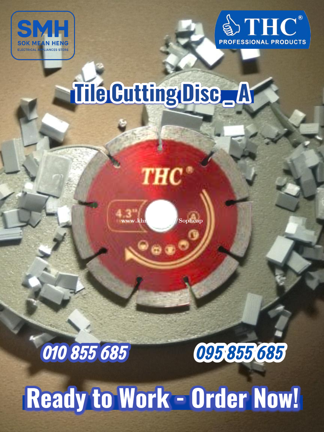 ផ្លែកាត់ការ៉ូ THC Tile / Diamond Cutting Disc . - ទំហំ / Size: 110x10x20mm / 4.3” (16-20mm / 4"-4.5") . - កាត់បានរលូន មិនបែកការ៉ូ / Smooth & precise cutting - ប្រើសម្រាប់ការ៉ូ ក្រានីត ថ្ម ឬស៊ីម៉ង / Ideal for tiles, granite, stone, and cement - ផ្លែរឹង ធន់នឹងកំដៅ / Strong steel blade, heat-resistant - កាត់បានត្រឹមត្រូវ ស្អាត និងលឿន / Suitable for 4” grinders or tile cutters . - ផលិតផលស្តង់ដាអន្តរជាតិ / International Standard Products - បច្ចេកវិទ្យារបស់ប្រទេសជប៉ុន / Technology of Japan - គុណភាពខ្ពស់ / ធន់ / រឹងមាំ _ High Quality / Durable / Strong - សមស្របសម្រាប់ការ.កាត់ / ឆាប / ប៉ូលា / សំលៀង - Suitable for Cutting / Grinding / Polishing / Sharpening . * តំលៃ / Price: + 110C = 1.5$ + 110B = 2$ + 110A = 2.5$ . SMH / សុខ មាន ហេង / Sok Mean Heng ហាងលក់គ្រឿងប្រើប្រាស់អគ្គិសនី / Electrical Appliances Store . ✅ ហាងផ្លូវការដែលមានការទទួលស្គាល់ត្រឹមត្រូវដោយ Khmer24 / Verified Business Account by Khmer24 💯 ទទួលបានទំនុកចិត្តខ្ពស់ពីអតិថិជនជាច្រើន / Trusted by Real Customers. 📍 មានទីតាំងច្បាស់លាស់ និងពិតប្រាកដនៅភ្នំពេញ / We have a clear and real/verified location in Phnom Penh. . Phone / Telegram (សេវាកម្មរហ័ស / Fast Service): Smart: 010855xxxClick To Call / https://t.me/Annsopheap Cellcard: 095855xxxClick To Call / http://t.me/Annsopheap095 . អាស័យដ្ឋាន / Address: No. 392, MaoTseToung Blvd. (St. 245), Phnom Penh. (Near P Jolie Beauty Center) . ផែនទី / Maps: https://www.google.com/maps?q=11.55595844757693,104.90165490657091&15 . #ធីអេកស៊ី #ផ្លែកាត់ការ៉ូ #កាត់ការ៉ូ #ការ៉ូ #ផ្លែ #ថ្ម #កាត់ #ឆាប #ប៉ូលា #សំលៀង #THC #TileCuttingDisc #DiamondCuttingDisc #CuttingDisc #Saw #Carver #Grinder #Cutter #Polisher #Sharpener #Wheel #Blade #Tools #SMH #Cambodia #Japan #Thailand #កម្ពុជា #ជប៉ុន #ថៃ #Appliances #HomeApplaince #ApplianceStore #ElectricAppliances #ElectricalAppliances #កម្ពុជា #ខ្មែរ #ភ្នំពេញ #Cambodia #Khmer #PhnomPenh