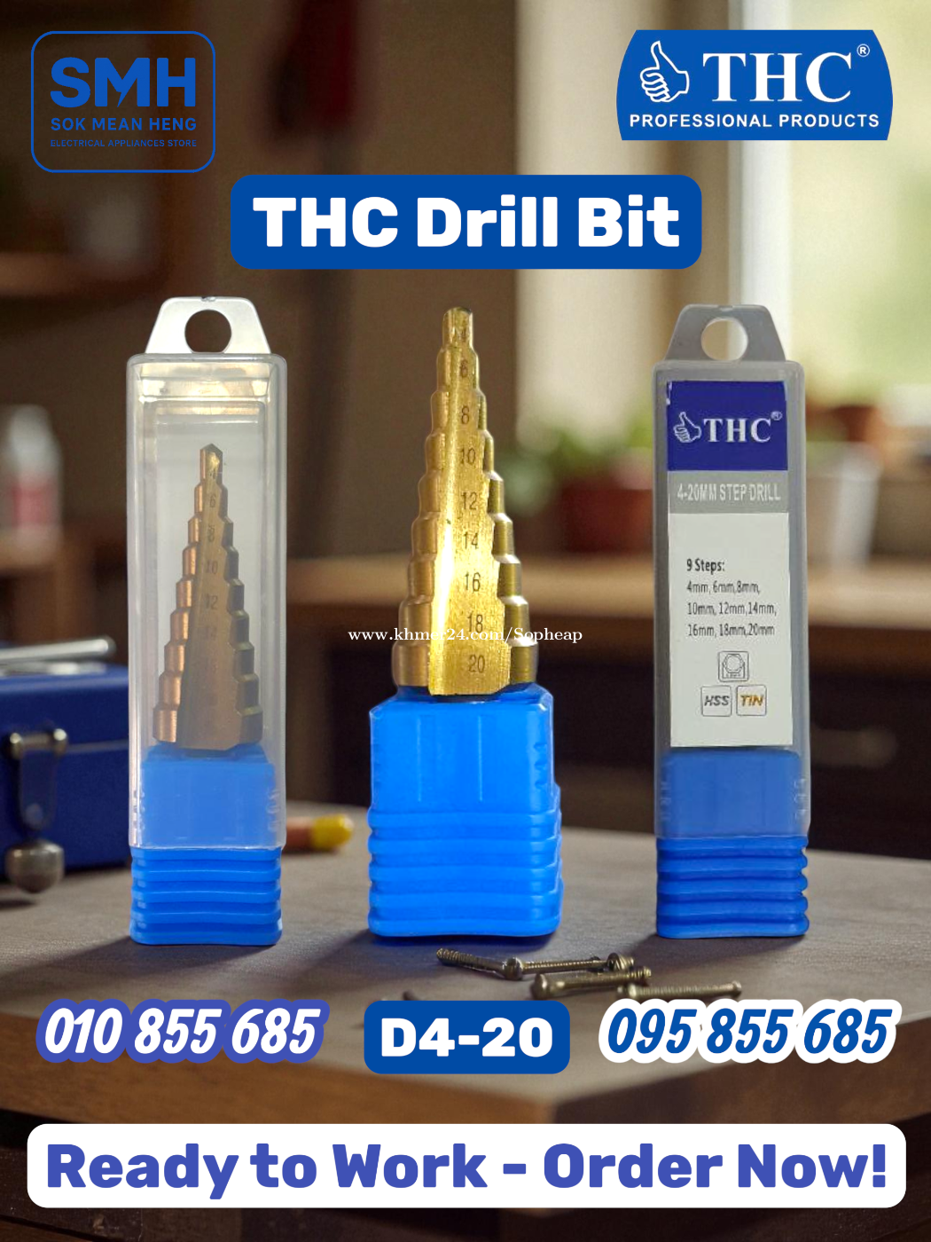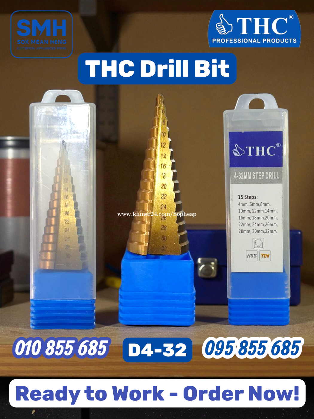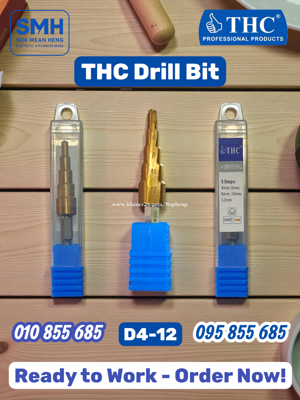 ផ្លែស្វាន.ពង្រីក _ បន្ទះ / ប្រអប់ THC Step Drill Bit . - បង្កើតឡើងពី HSS (High-Speed Steel) មានថ្នាំកូត TiN ធន់នឹងការពាក់ កាត់រលូន និងប្រើបានយូរ - Made of High-Speed Steel (HSS) with TiN coating for extra durability and smooth drilling. - សាកសមសម្រាប់ស្វានលើ ដែក / អាលុយមីញ៉ូម / ប្លាស្ទិក / ឈើ - Perfect for drilling metal, aluminum, plastic, and wood - ប្រើបានជាមួយ ម៉ាស៊ីនស្វានដៃ ឬ ម៉ាស៊ីនស្វានអគ្គិសនី - Compatible with hand drills and electric drills - ផ្លែតែមួយអាចស្វានបានច្រើនទំហំ (4–32mm) - One bit fits all sizes (4–32mm) . - ផលិតផលស្តង់ដាអន្តរជាតិ / International Standard Products - បច្ចេកវិទ្យារបស់ប្រទេសជប៉ុន / Technology of Japan - គុណភាពខ្ពស់ / ធន់ / រឹងមាំ _ High Quality / Durable / Strong . 1. ផ្លែស្វានពង្រីក _ ប្រអប់ THC Step Drill Bit - D4-12 : 5 Steps : 4-12 mm = 1.9$ - D4-20 : 9 Steps : 4-20 mm = 2.5$ - D4-32 : 15 Steps : 4-32 mm = 4.9$ . 2. ផ្លែស្វាន.ពង្រីក _ បន្ទះ THC Step Drill Bit - D4-12M2 : 5 Steps : 4-12 mm = 2.9$ - D4-20M2 : 9 Steps : 4-20 mm = 6.5$ - D4-32M2 : 15 Steps : 4-32 mm = 11.9$ . SMH / សុខ មាន ហេង / Sok Mean Heng ហាងលក់គ្រឿងប្រើប្រាស់អគ្គិសនី / Electrical Appliances Store . ✅ ហាងផ្លូវការដែលមានការទទួលស្គាល់ត្រឹមត្រូវដោយ Khmer24 / Verified Business Account by Khmer24 💯 ទទួលបានទំនុកចិត្តខ្ពស់ពីអតិថិជនជាច្រើន / Trusted by Real Customers. 📍 មានទីតាំងច្បាស់លាស់ និងពិតប្រាកដនៅភ្នំពេញ / We have a clear and real/verified location in Phnom Penh. . Phone / Telegram (សេវាកម្មរហ័ស / Fast Service): Smart: 010855xxxClick To Call / https://t.me/Annsopheap Cellcard: 095855xxxClick To Call / http://t.me/Annsopheap095 . អាស័យដ្ឋាន / Address: No. 392, MaoTseToung Blvd. (St. 245), Phnom Penh. (Near P Jolie Beauty Center) . ផែនទី / Maps: https://www.google.com/maps?q=11.55595844757693,104.90165490657091&15 . #ធីអេកស៊ី #ផ្លែពង្រីក #ផ្លែស្វានពង្រីក #ផ្លែស្វាន #THC #StepDrillBit #DrillBit #SMH #កម្ពុជា #ជប៉ុន #ថៃ #Cambodia #Japan #Thailand #Appliances #HomeApplaince #ApplianceStore #ElectricAppliances #ElectricalAppliances #កម្ពុជា #ខ្មែរ #ភ្នំពេញ #Cambodia #Khmer #KH #PhnomPenh
