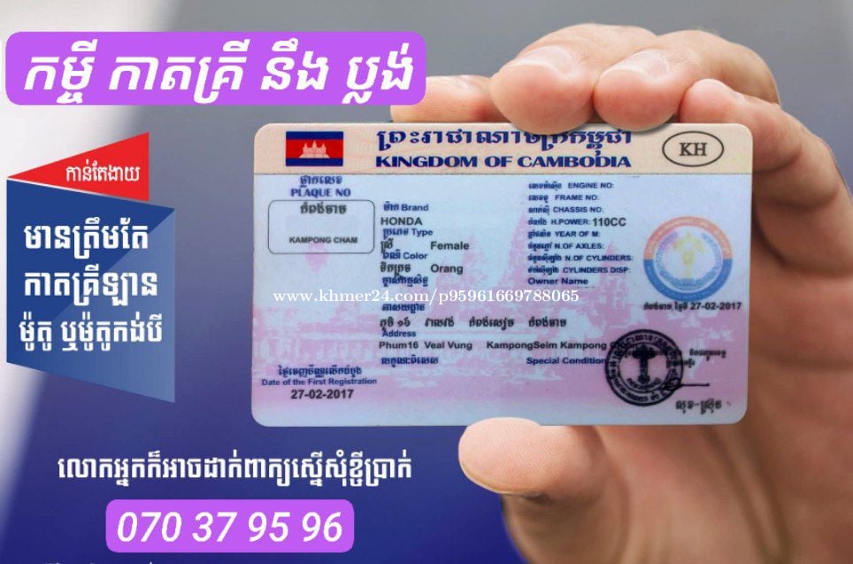 តម្កល់តែ កាតគ្រី ម៉ូតូ& ឡាន& កង់បី នឹងប្លង់ អាចស្នើរបាន 75%នៃតម្លៃទ្រព្យ ភ្នំពេញ () 070379xxxClick To Call 078888xxxClick To Call