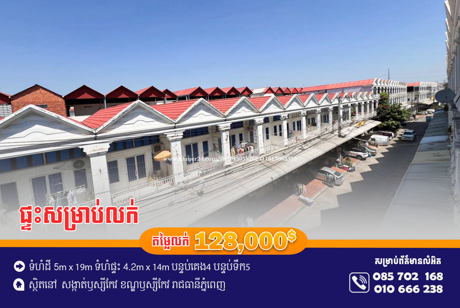 មានផ្ទះ១ល្វែងសល់ចំហៀងជិត១ម៉ែត្រលក់បន្ទាន់ ស្ថិតនៅជិតបឹងកក់ ផ្ទះនៅថ្មីស្អាត ទិញរស់នៅផង ទុកជួលផងក៏បានដែរ ព្រោះមានជណ្តើរចំហៀង តាមការវាយតម្លៃជាក់ស្តែងផ្ទះនេះលក់ទាបជាងទីផ្សារ ទិញហើយចំណេញ 📍ទីតាំងស្ថិនៅ សង្កាត់ឫស្សីកែវ ខណ្ឌឫស្សីកែវ ភ្នំពេញ ◈━━━━━━━━━━━━◈ តម្លៃលក់| Sale Price $128,000 ចរចា ទំហំផ្ទះ 4.2m x 14m(កំពស់2ជាន់) បន្ទប់គេង 4 បន្ទប់ទឹក5 ◈━━━━━━━━━━━━◈ 📍សូមចូលទៅកាន់𝗧𝗲𝗹𝗲𝗴𝗿𝗮𝗺 𝗖𝗵𝗮𝗻𝗻𝗲𝗹ពេលនេះ ដើម្បីស្វែងរកអចលនទ្រព្យពិសេសផ្សេងទៀត៖ 🔗 𝐓𝐞𝐥𝐞. 𝐂𝐡𝐚𝐧𝐧𝐞𝐥:𝗵𝘁𝘁𝗽𝘀://𝘁.𝗺𝗲/𝗦𝗼𝗸𝗵𝗮𝗶𝗥𝗲𝗮𝗹𝘁𝘆 ☎️ 𝗧𝗲𝗹𝗲𝗴𝗿𝗮𝗺:𝟬𝟭𝟬 𝟲𝟲𝟲 𝟮𝟯𝟴 ☎️ 𝗧𝗲𝗹𝗲𝗴𝗿𝗮𝗺:𝟬𝟴𝟱 𝟳𝟬𝟮 𝟭𝟲𝟴