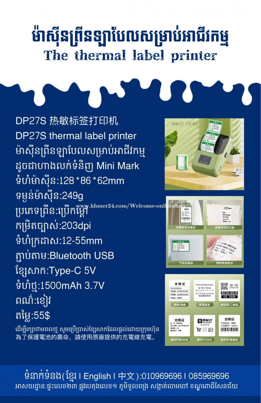 មានលក់លេខពិសេស មានទទួលកម្មង់លេខពិសេស មានលក់ម៉ាស៊ីនព្រីនឡាបែលចល័ត មានលក់ម៉ាស៊ីនព្រីនវិក័យប័ត្រចល័ត មានលក់សម្ភារៈប្រើប្រាស់ក្នុងគ្រួសារ Smart Prime II 1=30$ Smart hero 1=40$ ទូរសព្ទថ្មីក្នុងប្រអប់ លក់ធូរៗរហូតអស់ពីស្តុក អាចប្រើជាឧបករណ៍សម្រាប់ស៊ែរ wifi បាន ទំនាក់ទំនង(ខ្មែរ | English | 中文):010969xxxClick To Call | 085969xxxClick To Call Telegram: https://t.me/W9696 Telegram group: https://t.me/konkonnada អាសយដ្ឋាន:ផ្ទះលេខ២៣ ផ្លូវបេតុងលេខ១ ភូមិទួលពង្រ សង្កាត់ចោមចៅ ខណ្ឌពោធិ៍សែនជ័យ រាជធានីភ្នំពេញ ទីតាំង https://goo.gl/maps/8moqW4iTHUfJEvWQ9 ដើម្បីស្វែងរកលេខអាជីវកម្មដែលលោកអ្នកពេញចិត្ត សូមចូលទៅកាន់:https://www.khmer24.com/Welcome-onlineshop