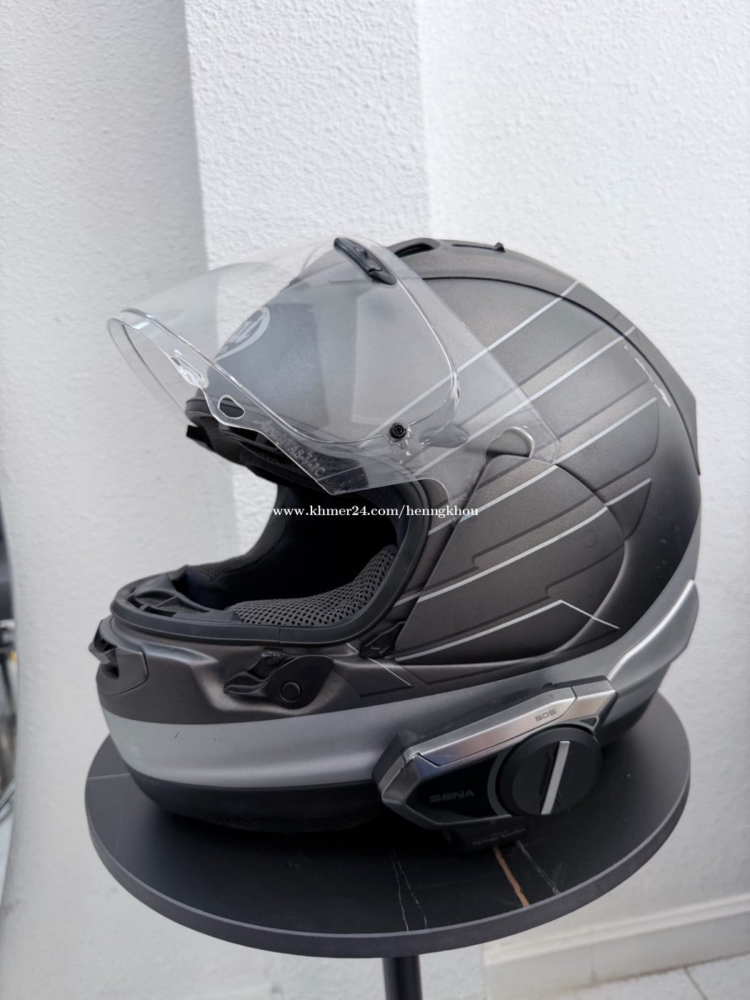 Shell Construction: Peripherally Belted Structural Net Composite (PB-SNC²), Sharp Rating: 5 Stars ***** Chin Strap: Double-D Fastening, Interior: Fully Removable, Pinlock: Pinlock Ready and Included as standard, Visor: Clear Scratch Resistant Max Vision, Safety Approval: ACU Gold Approved, Snell Approved លក់ ១ឈុតនេះ ទាំង speaker Sena Harman/kardon •ទំហំ XL (60cm - 61cm) •ស្ថានភាព : 95% •មិនសូវប្រើប្រាស់ •Speaker Sena Harman/Kardon 50S