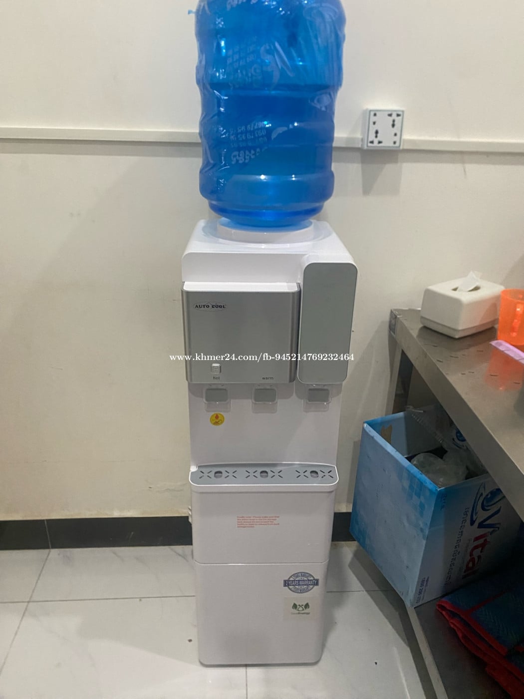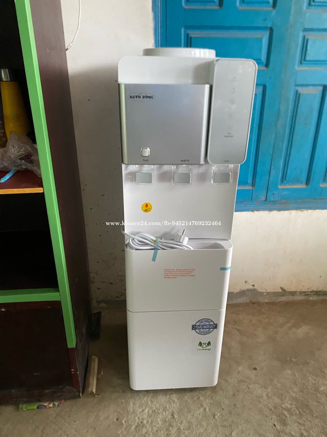 ម៉ាសុីនទឹកក្តៅទឹកត្រជាក់ទឹកធម្មតានិងមានផលិតទឹកកកម៉ាកAuto Coolមានគុណភាពល្អសុីភ្លើងតិចផលិតទឹកកកបានមួយថ្ងៃ១២គីឡូមានធានា១ឆ្នាំ 0969797xxxClick To Call